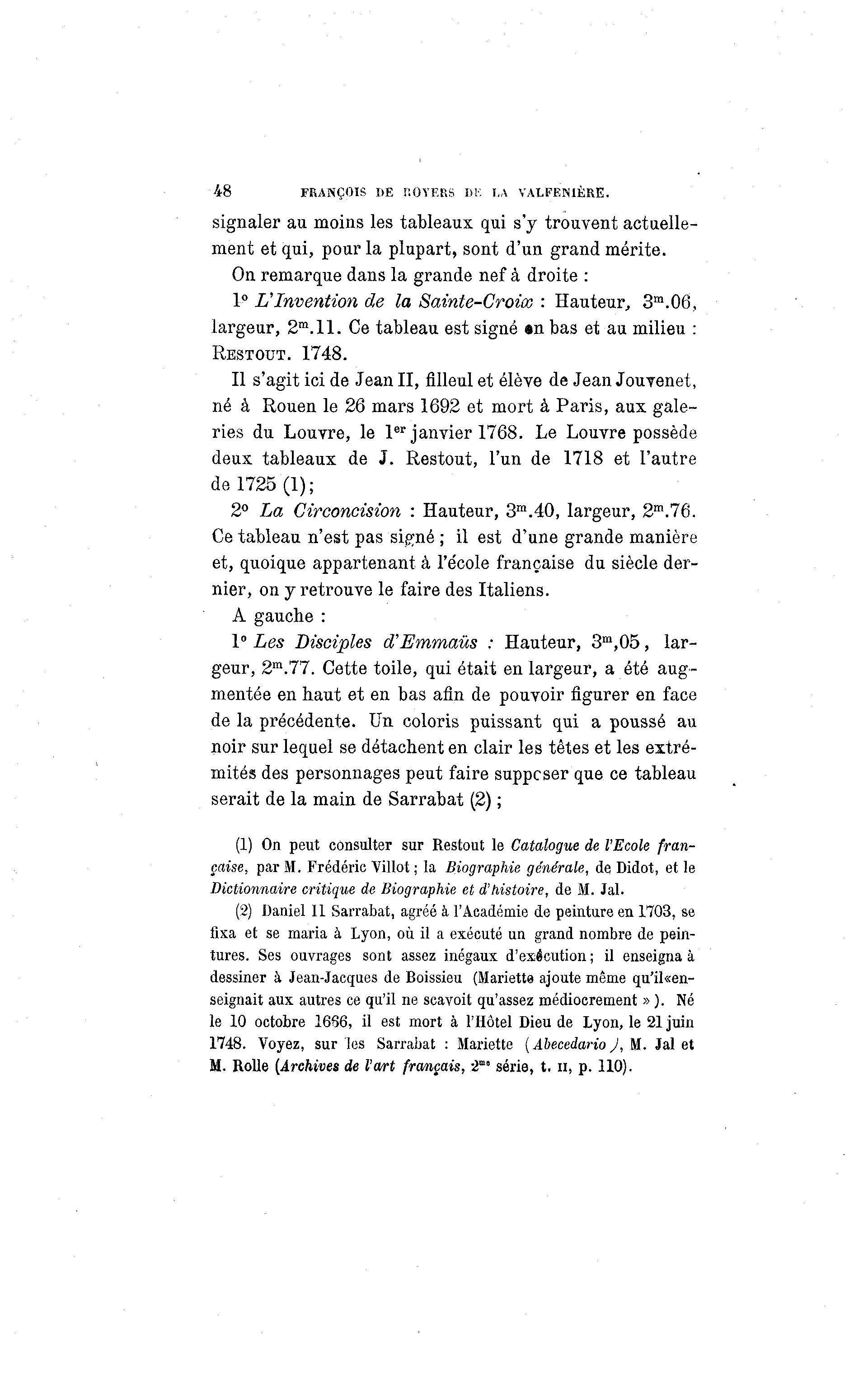 1748. Voyez, sur les Sarrabat : Mariette ( Abecedario J, M. Jal et