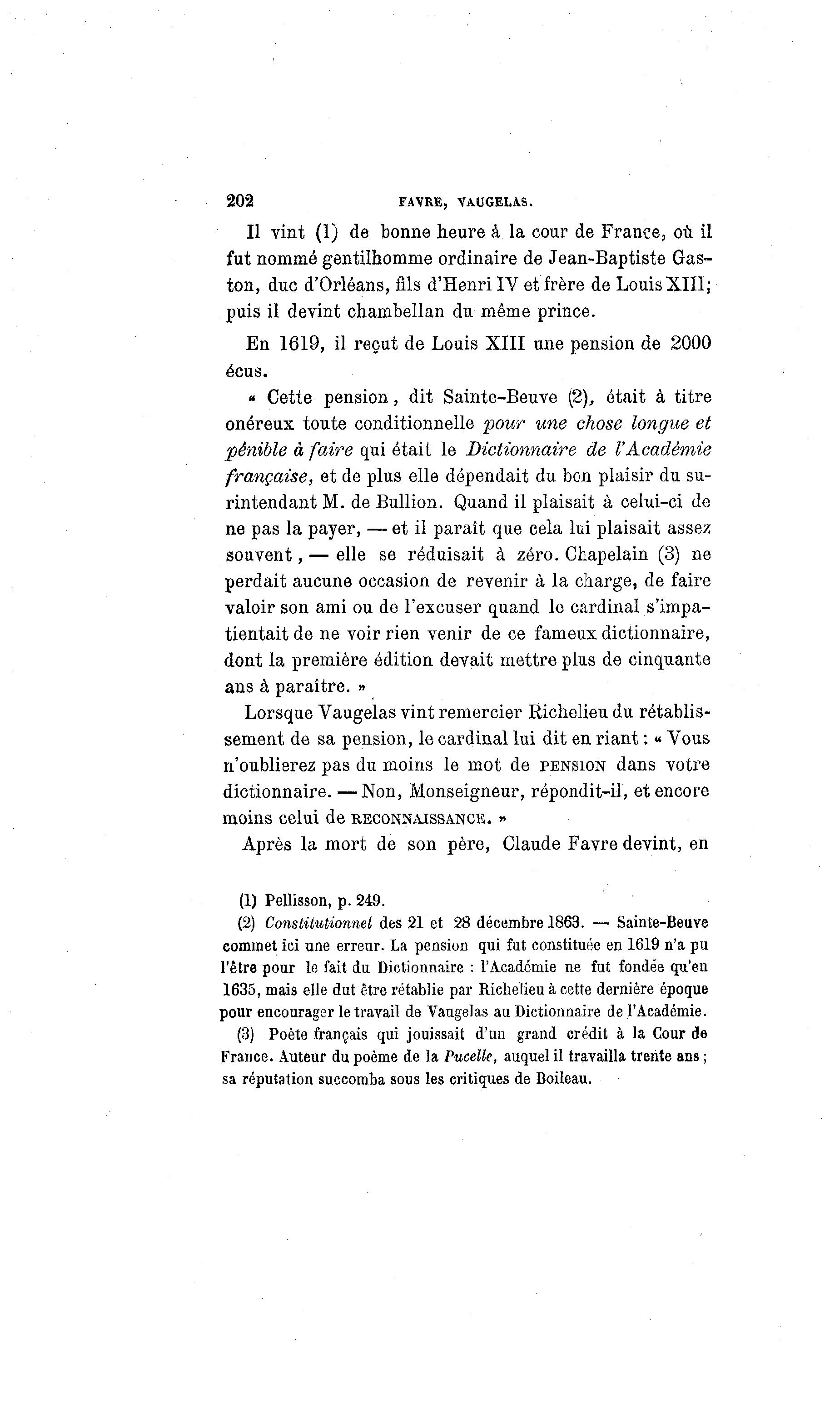 « Cette pension, dit Sainte-Beuve (2), était à titre
