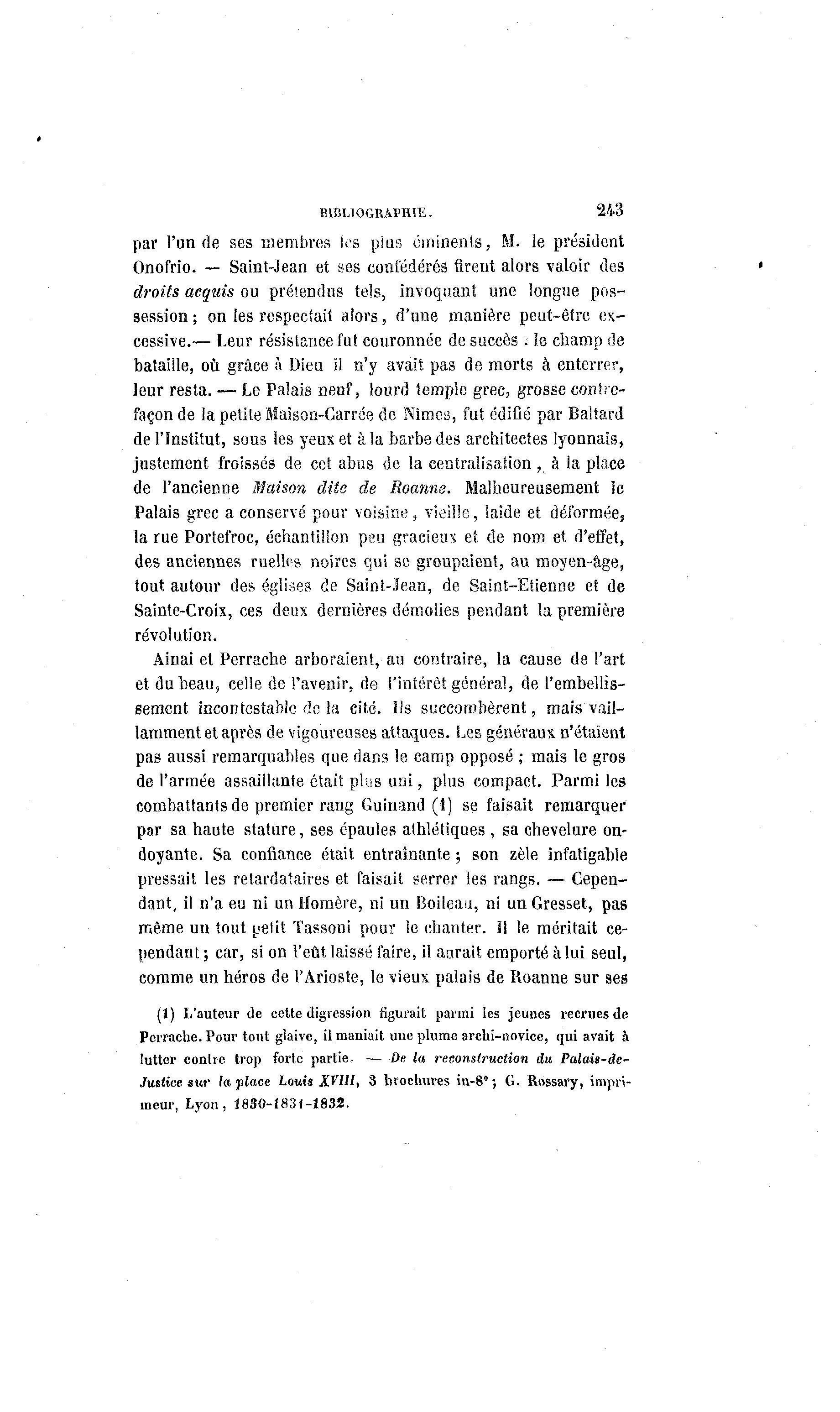 de l'ancienne Maison dite de Roanne. Malheureusement le