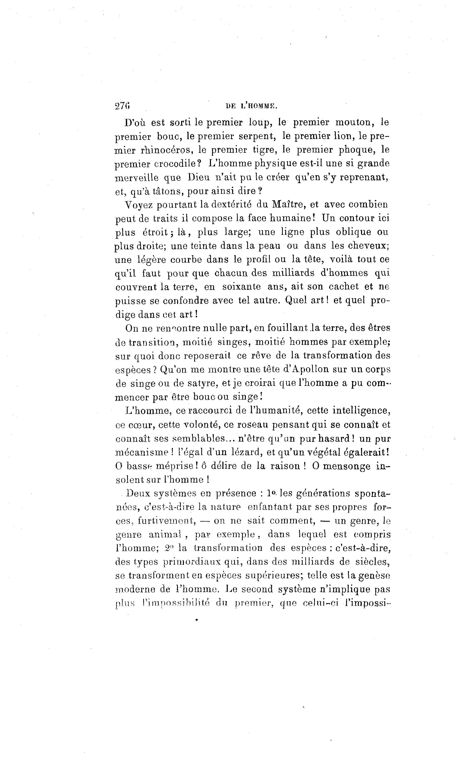 l'homme; 2" la transformation des espèces : c'est-à -dire,