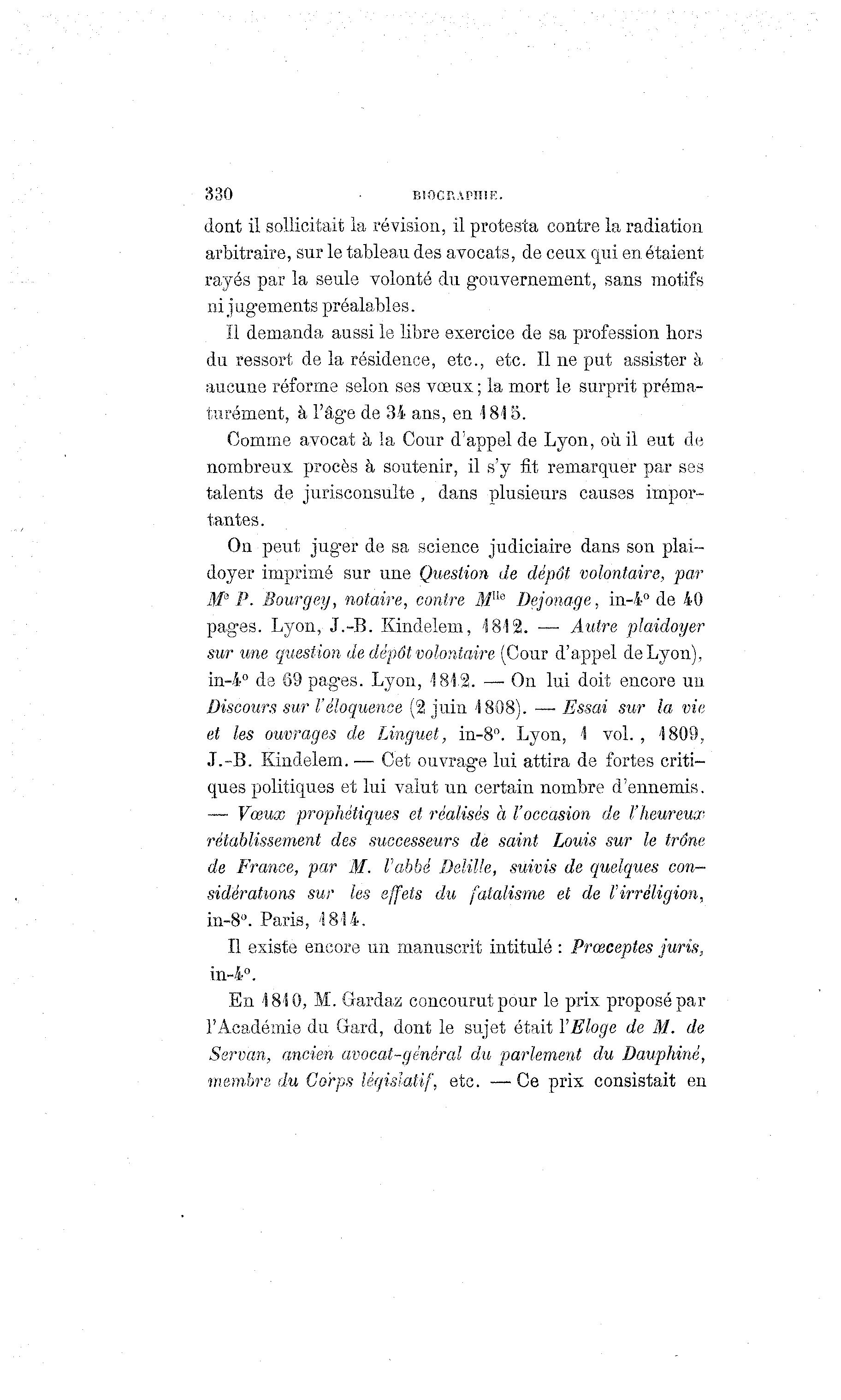 pages. Lyon, J.-B. Kindelem, 1812. — Autre plaidoyer