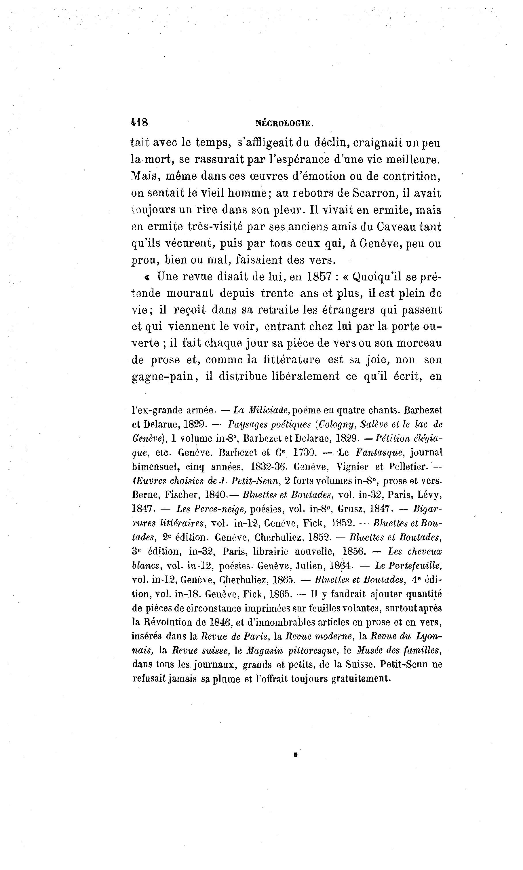 tion, vol. in-18. Genève, Fick, 1865. — Il y faudrait ajouter quantité