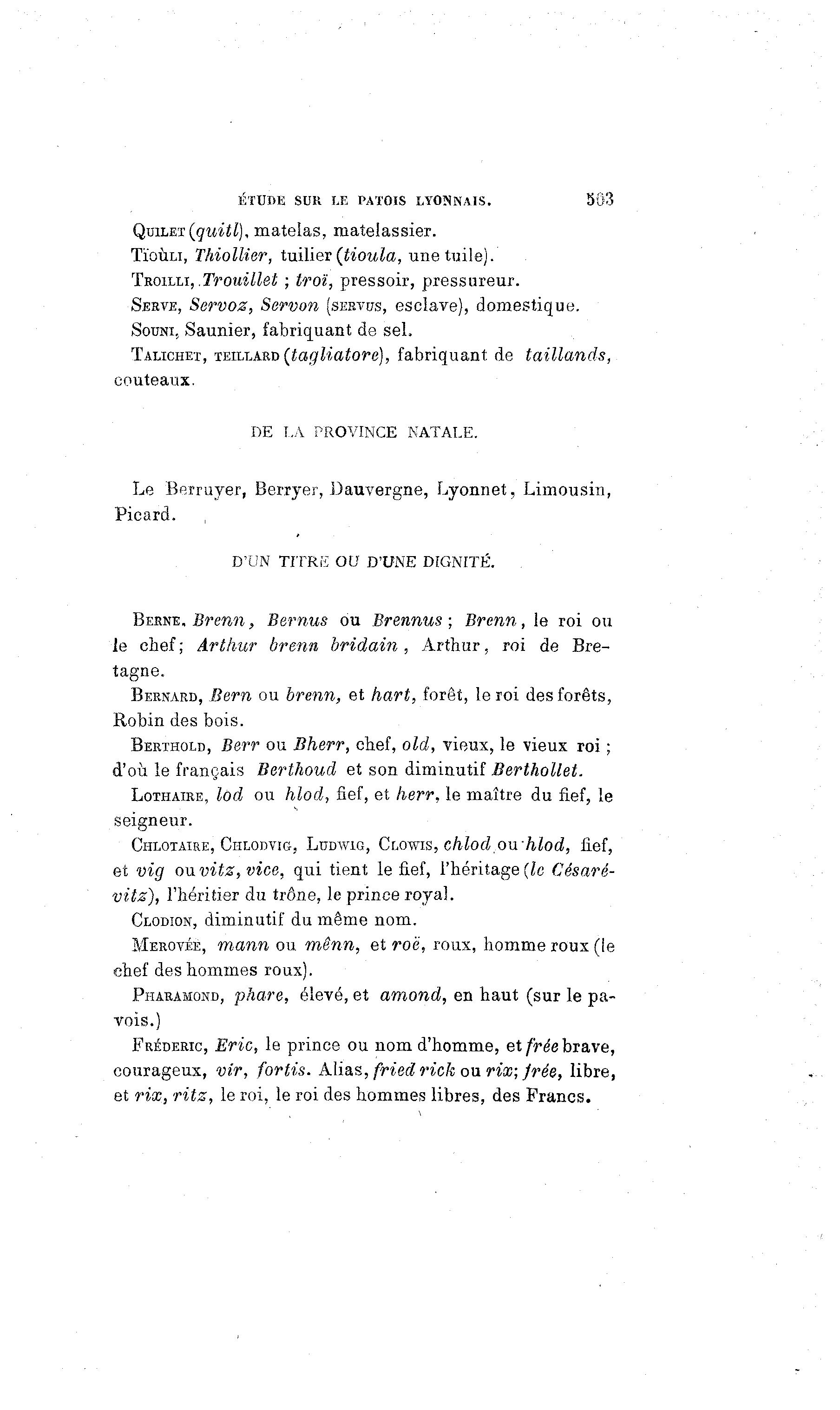 ÉTUDE SUR LE PATOIS LYONNAIS. 503