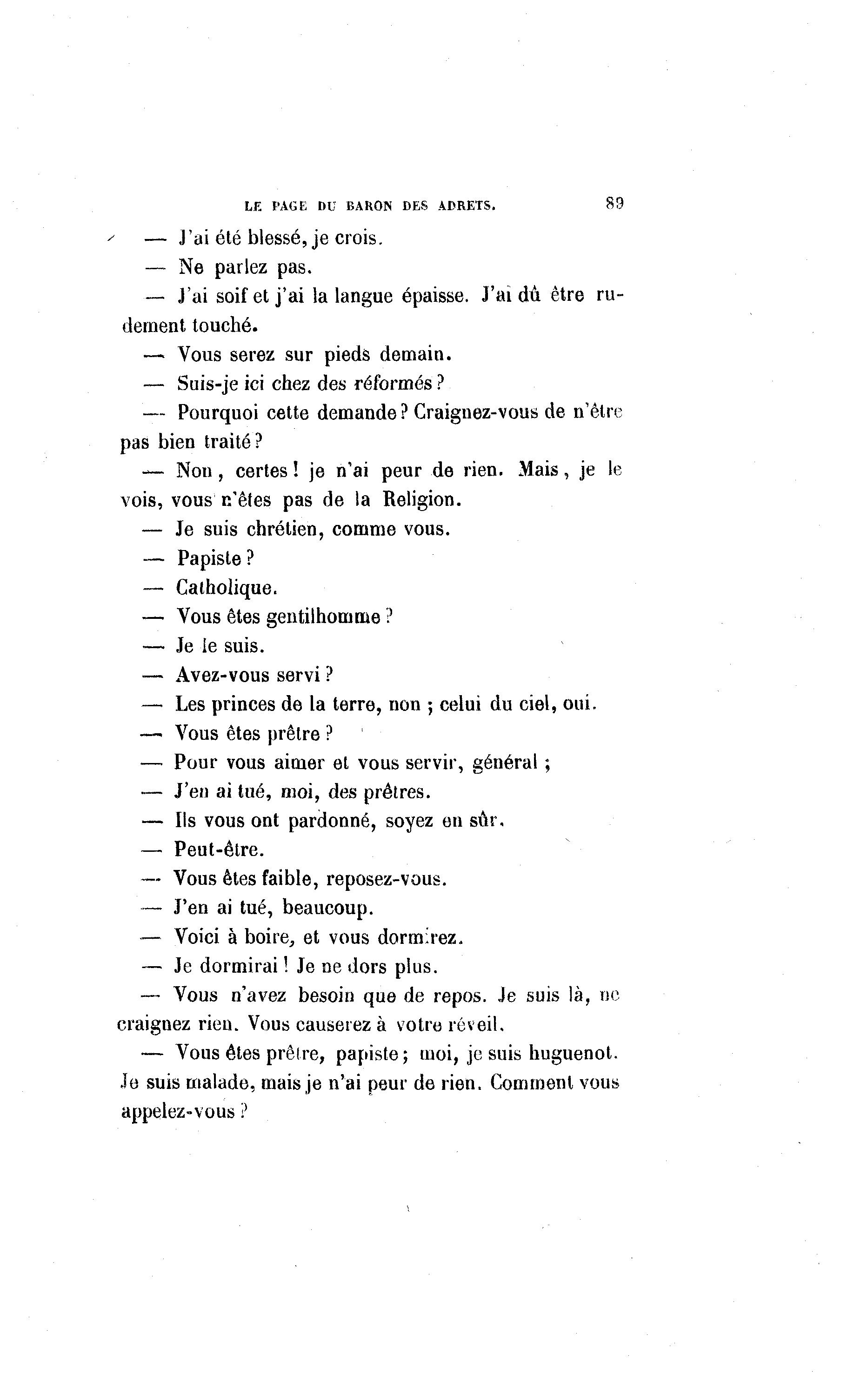 — Vous êtes prêlre, papiste; moi, je suis huguenot.