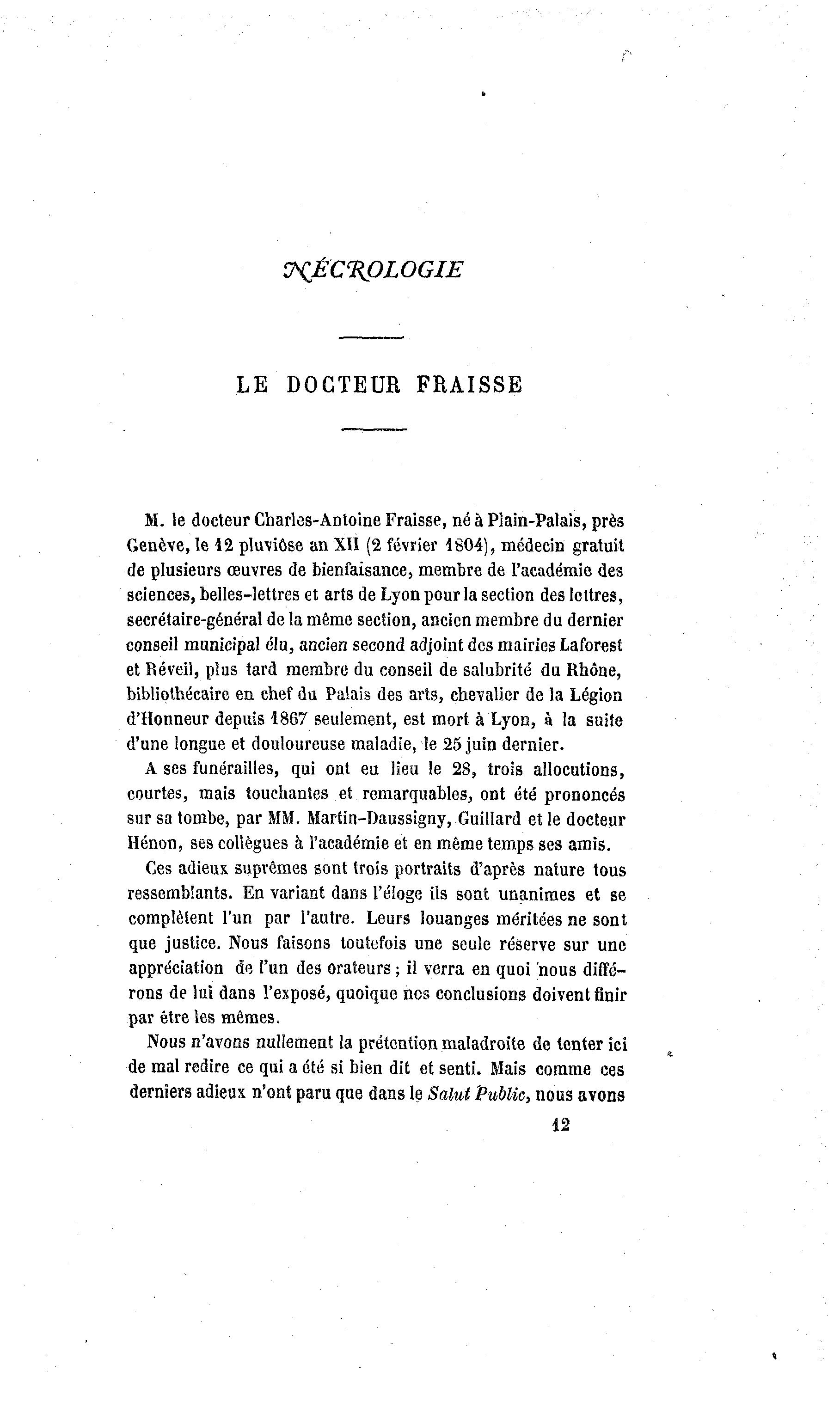 M. le docteur Charles-Antoine Fraisse, né à Plain-Palais, près