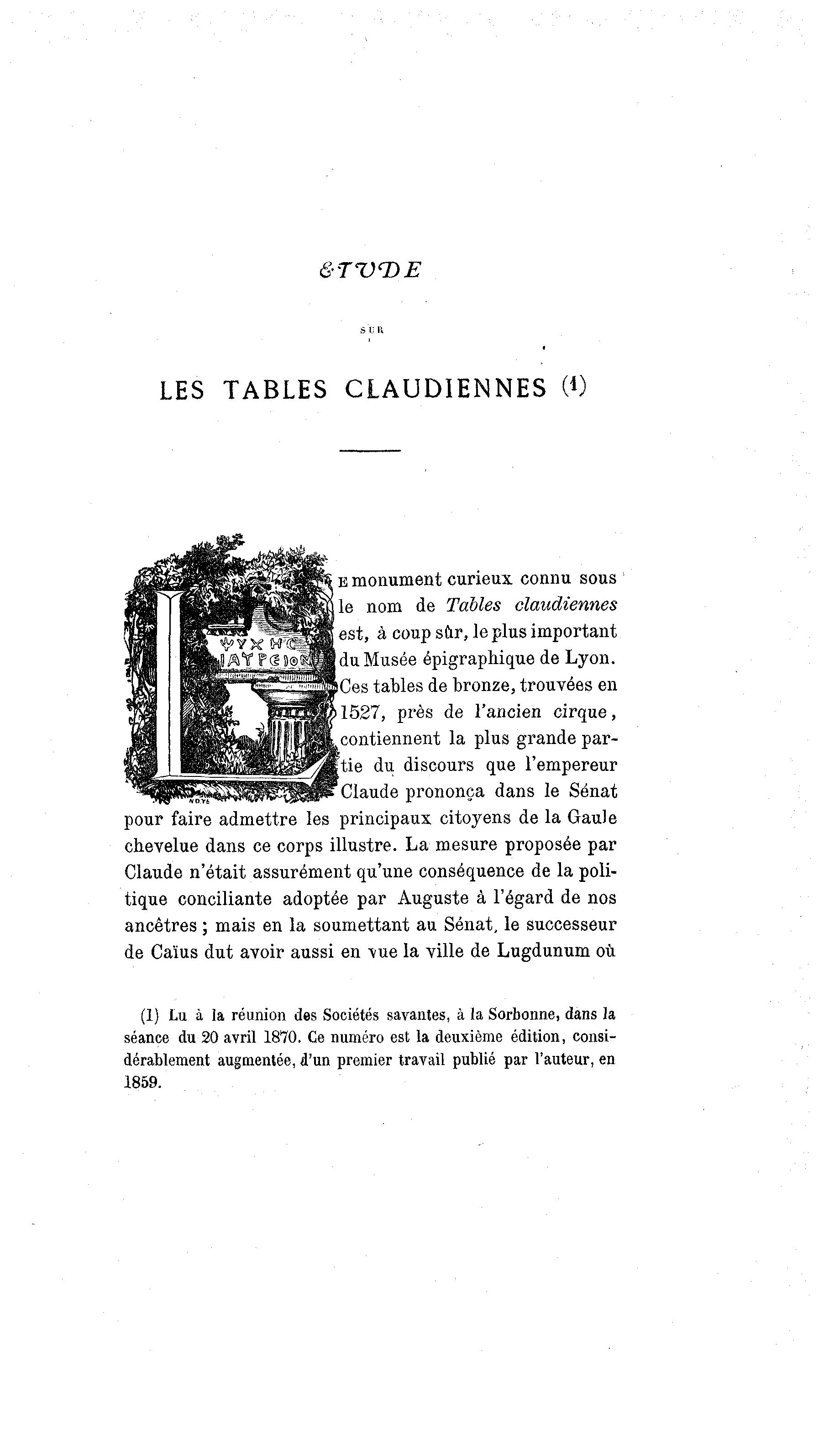 LES TABLES CLAUDIENNES (0