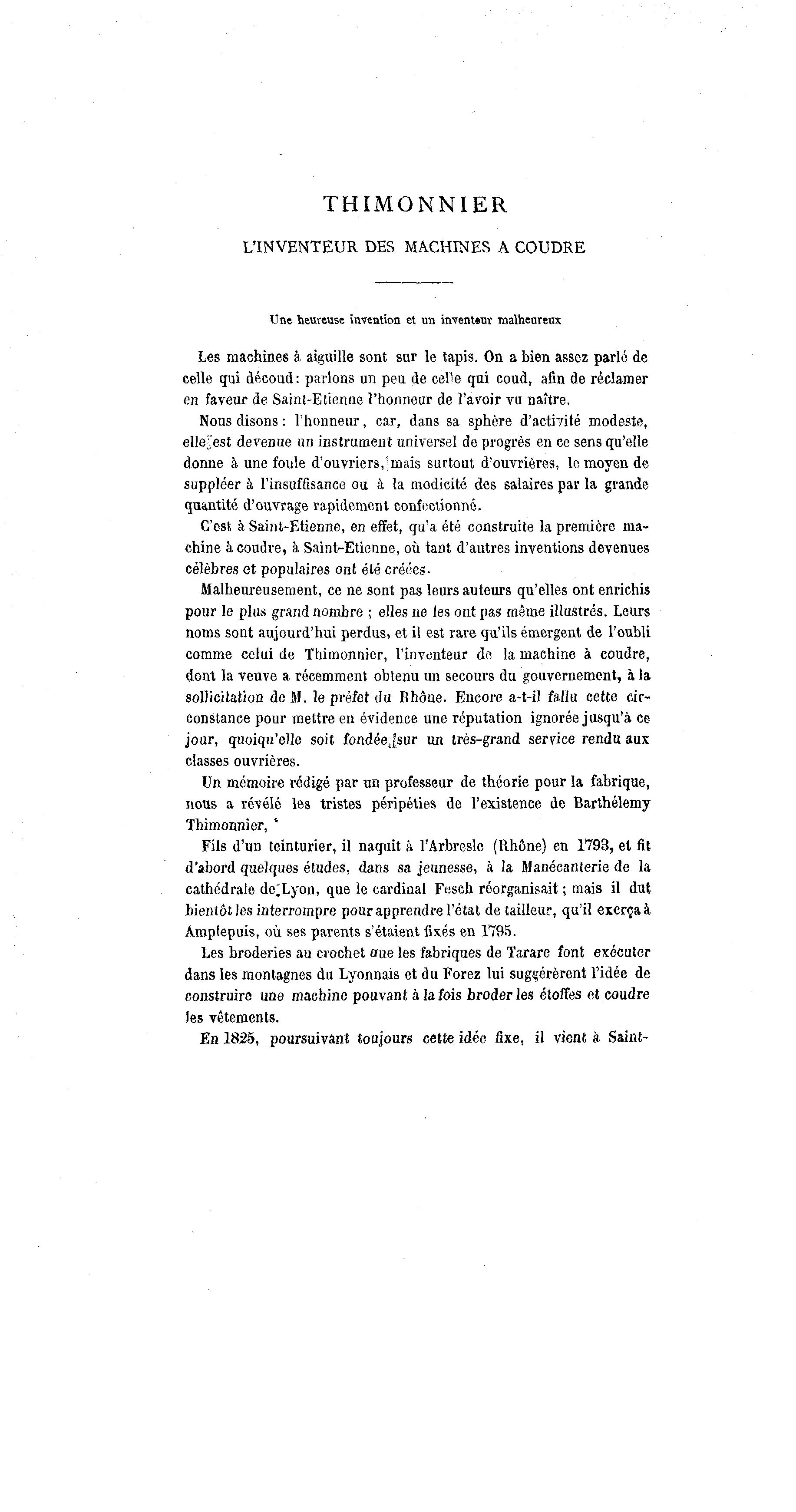 comme celui de Thimonnier, l'inventeur de la machine à coudre,