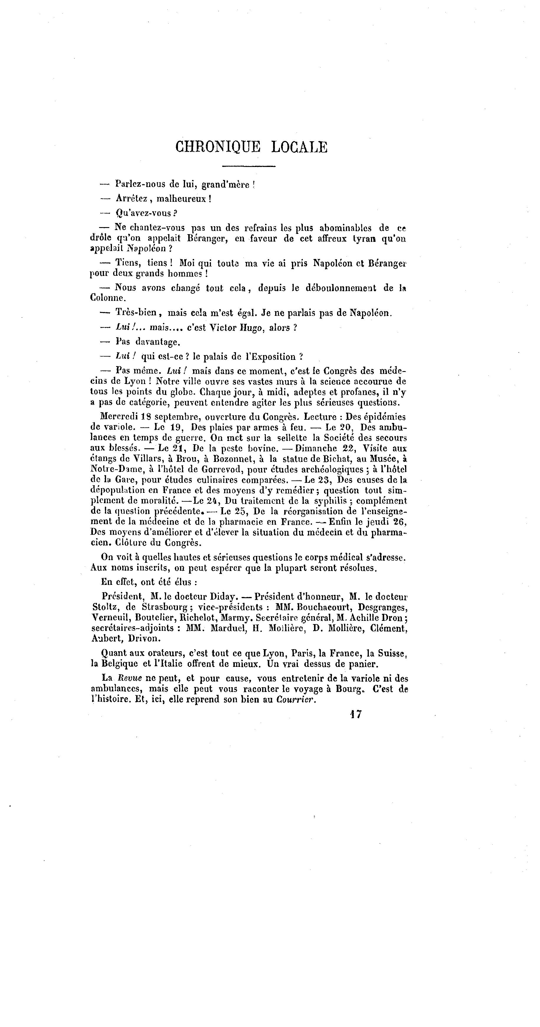 Quant aux orateurs, c'est tout ce que Lyon, Paris, la France, la Suisse,