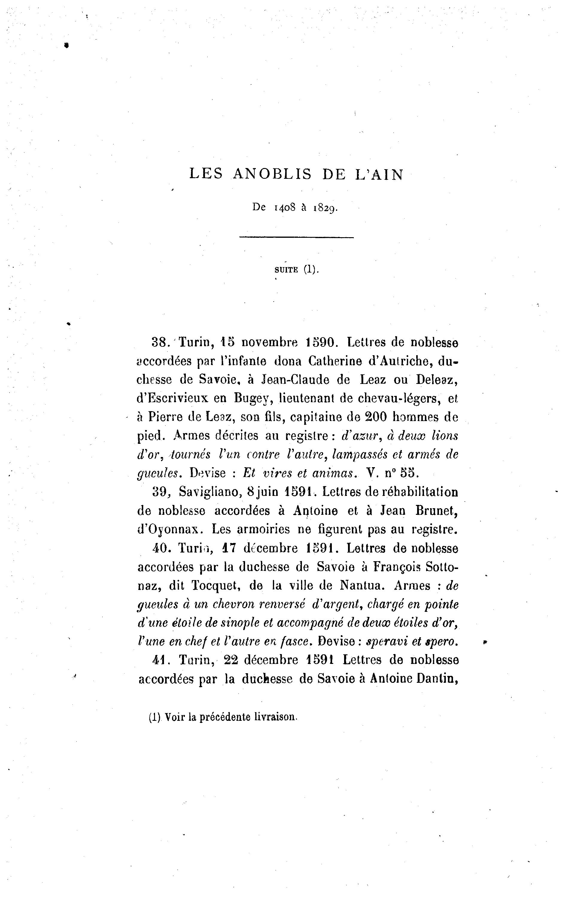 41. Turin, 22 décembre 1591 Lettres de noblesse