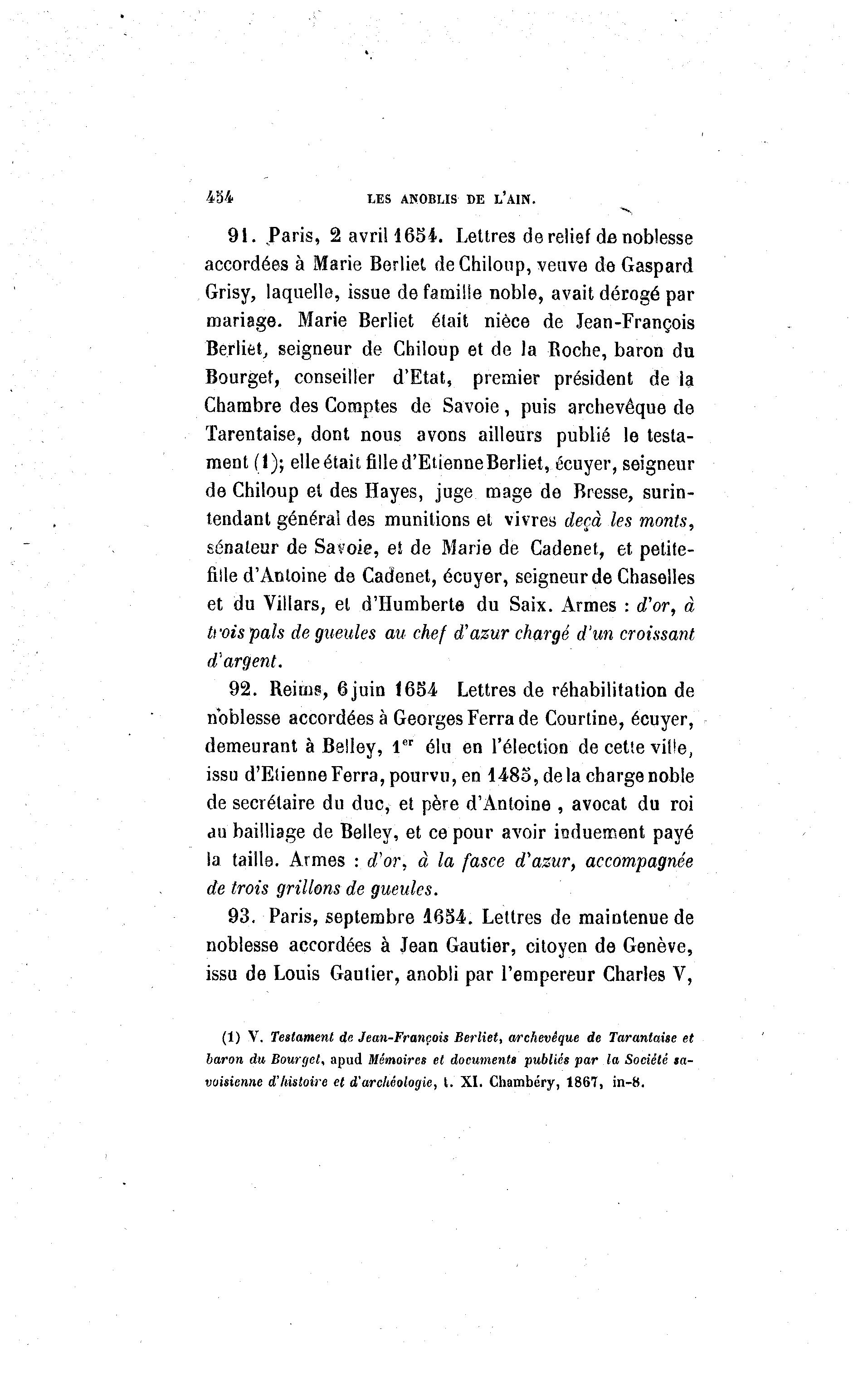 (1) V. Testament de Jean-François Berliet, archevêque de Tarantaise et