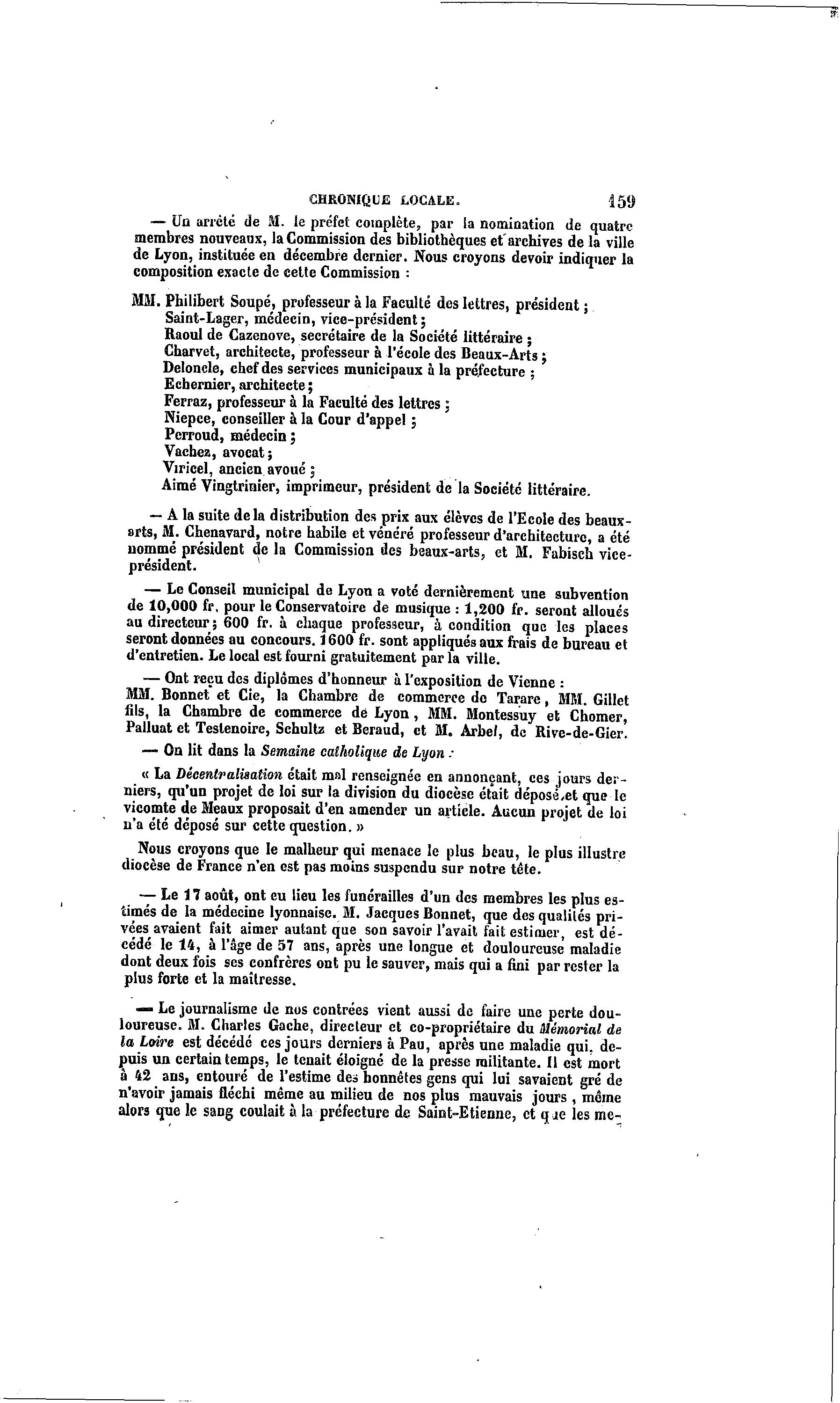 de Lyon, instituée en décembre dernier. Nous croyons devoir indiquer la