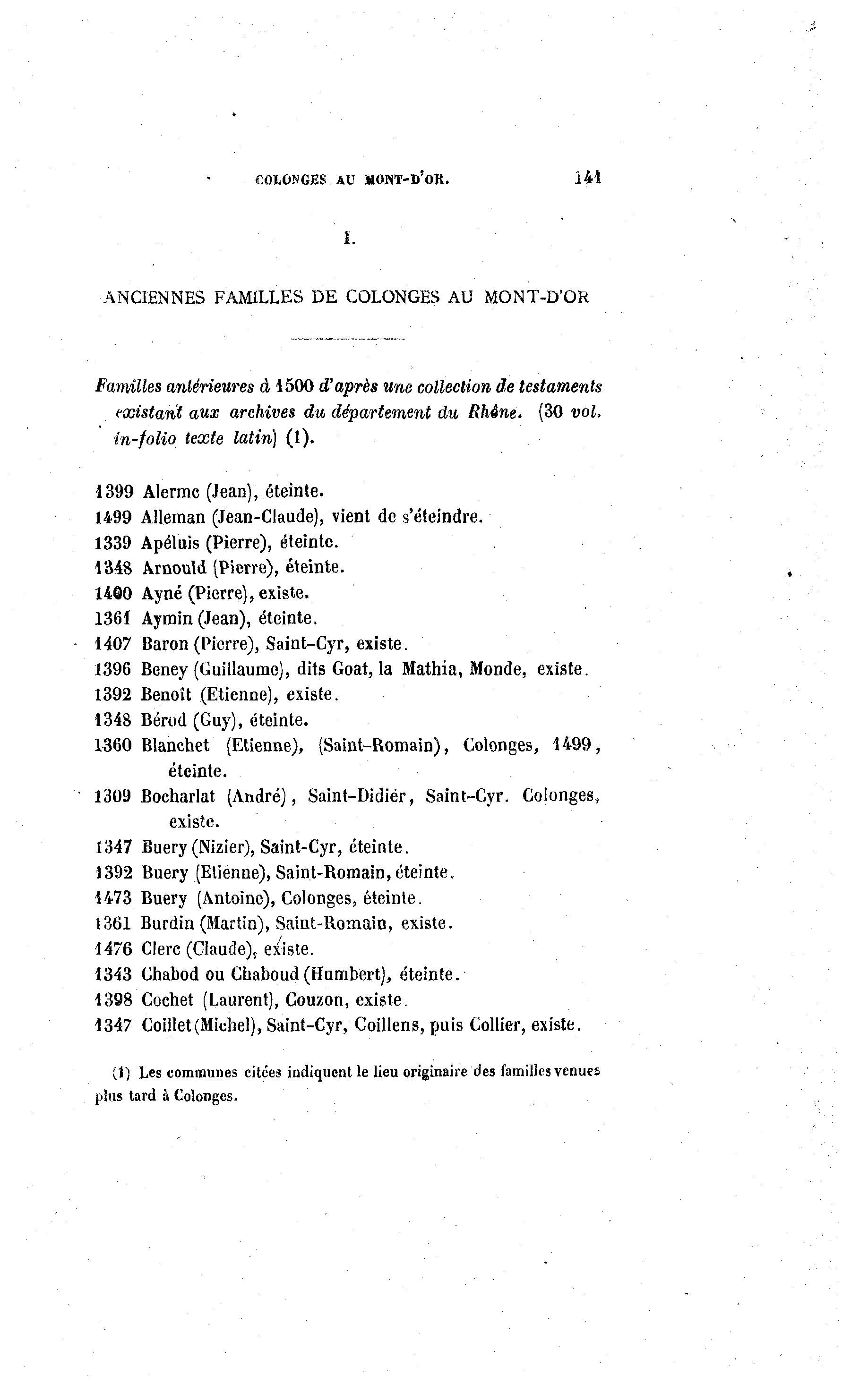 ANCIENNES FAMILLES DE COLONGES AU MONT-D'OR