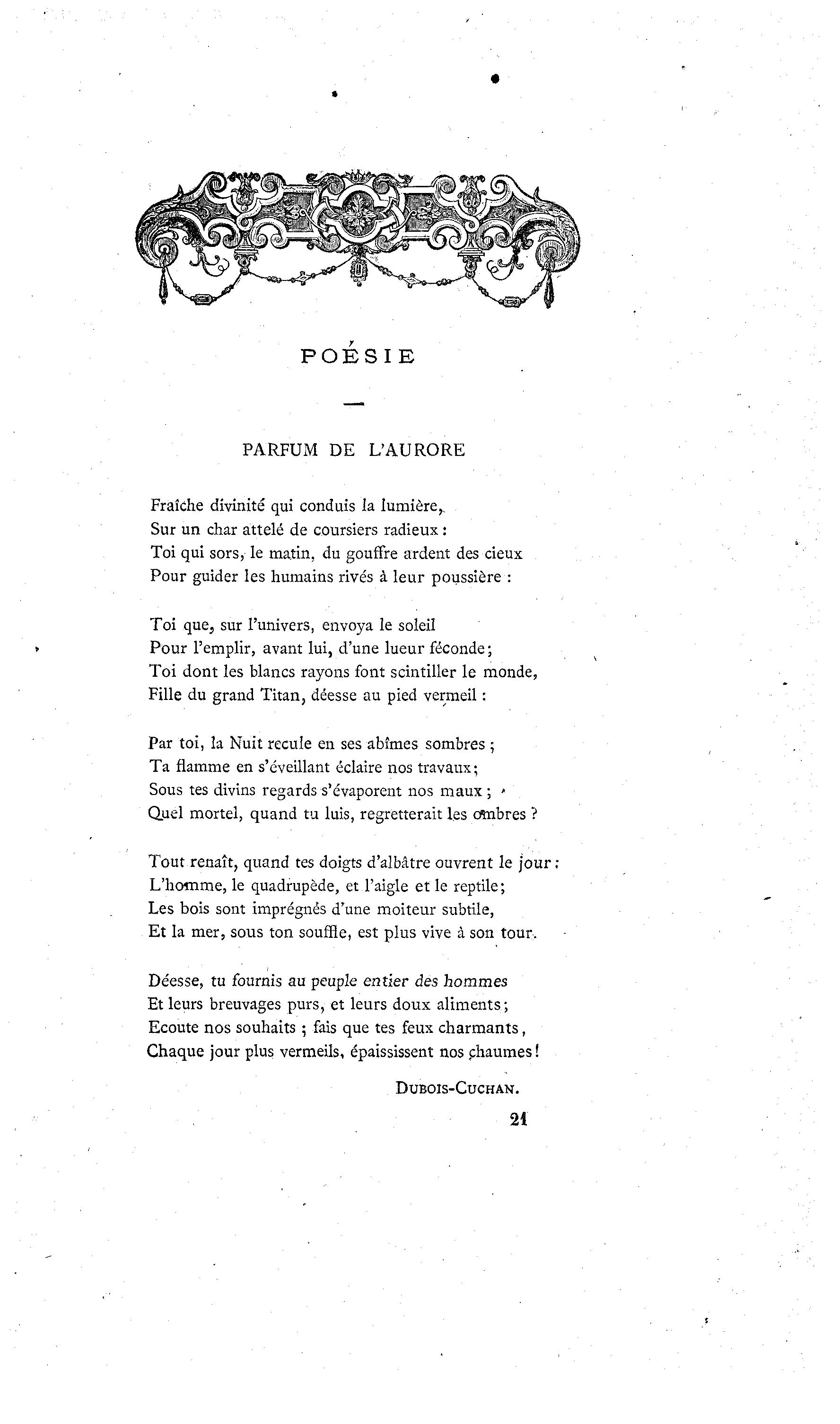 Tout renaît, quand tes doigts d'albâtre ouvrent le jour ;