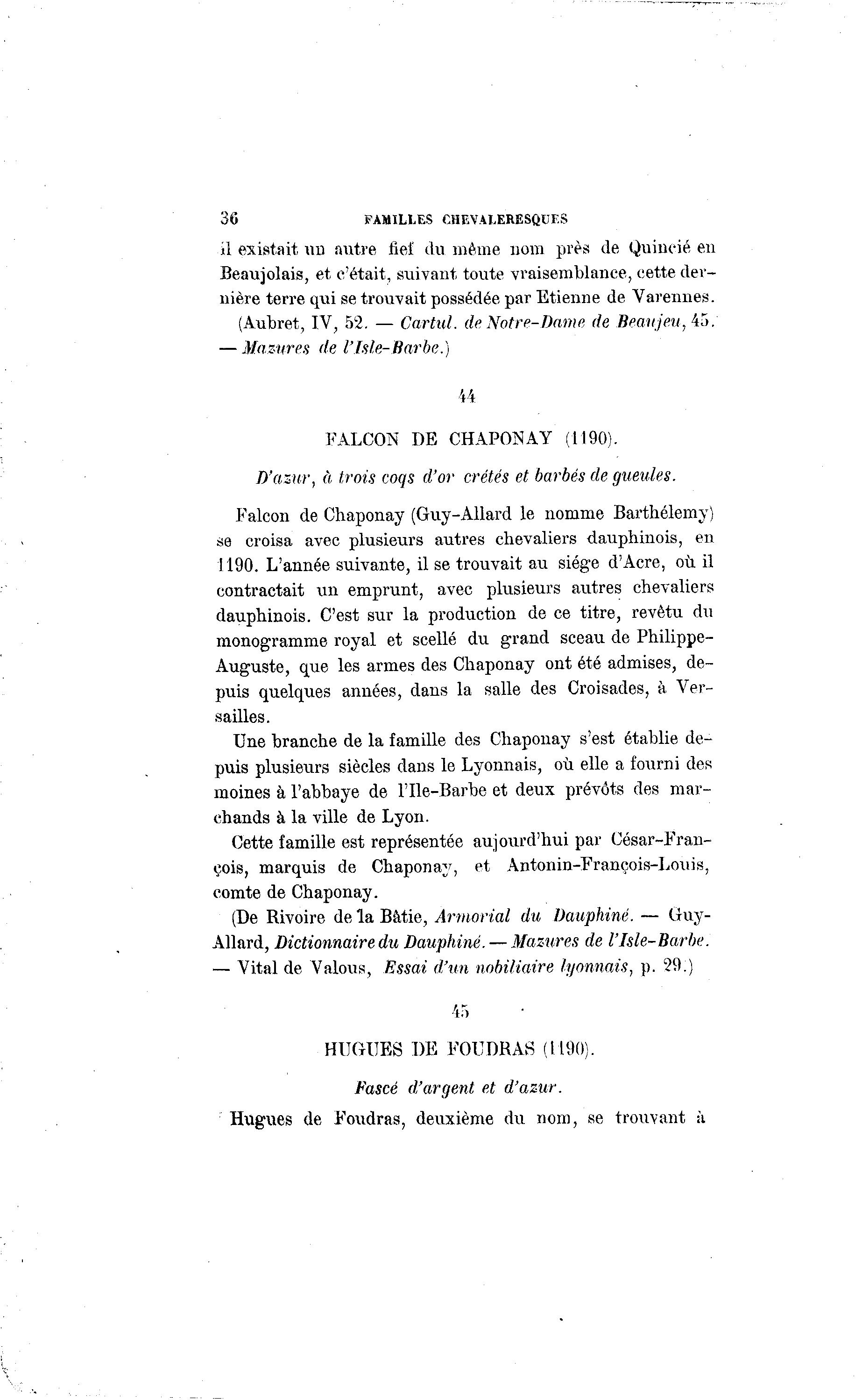 — Vital de Valous, Essai d'un nobiliaire lyonnais, p. 29.)