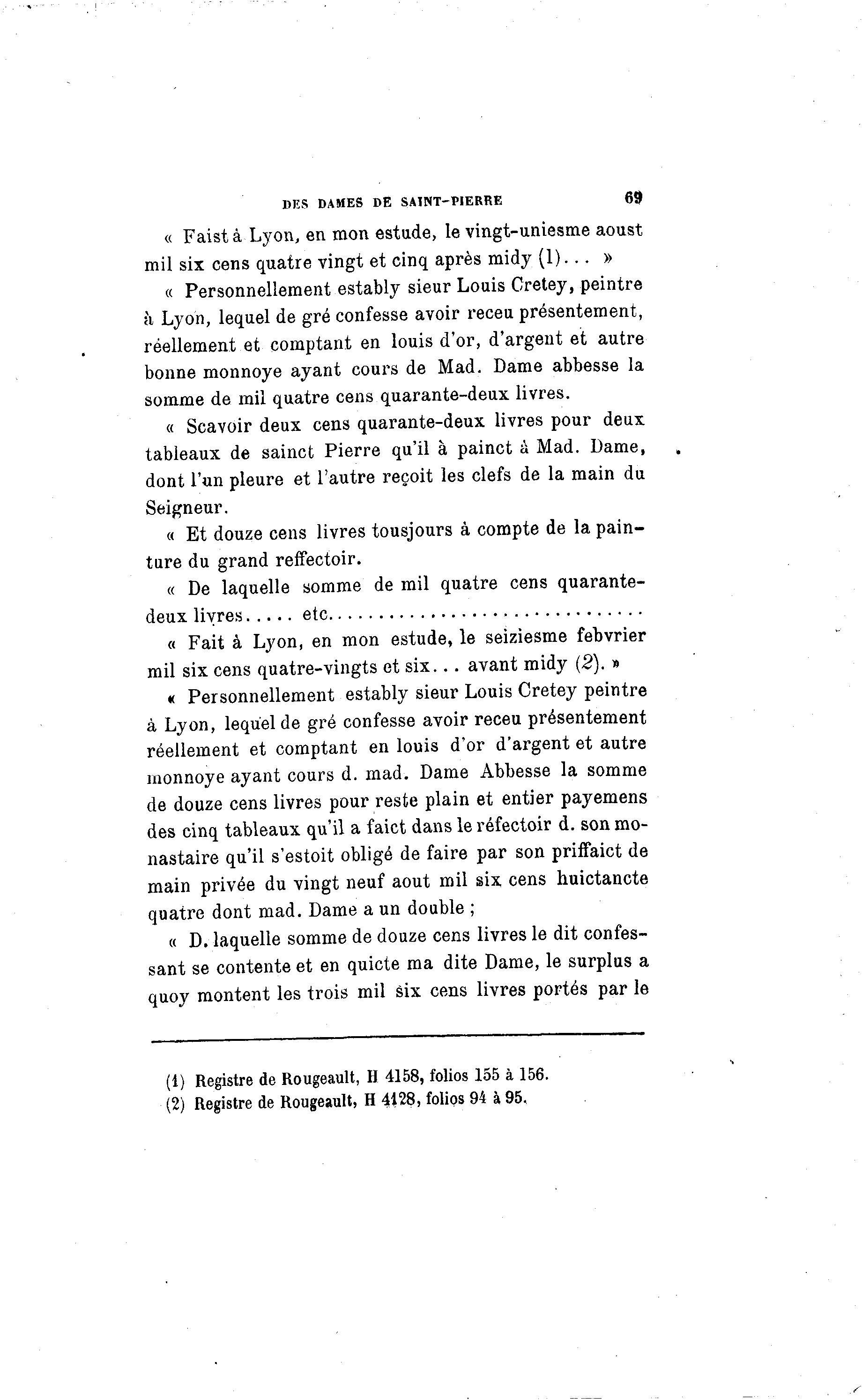 (1) Registre de Rougeault, H 4158, folios 155 Ã 156.
