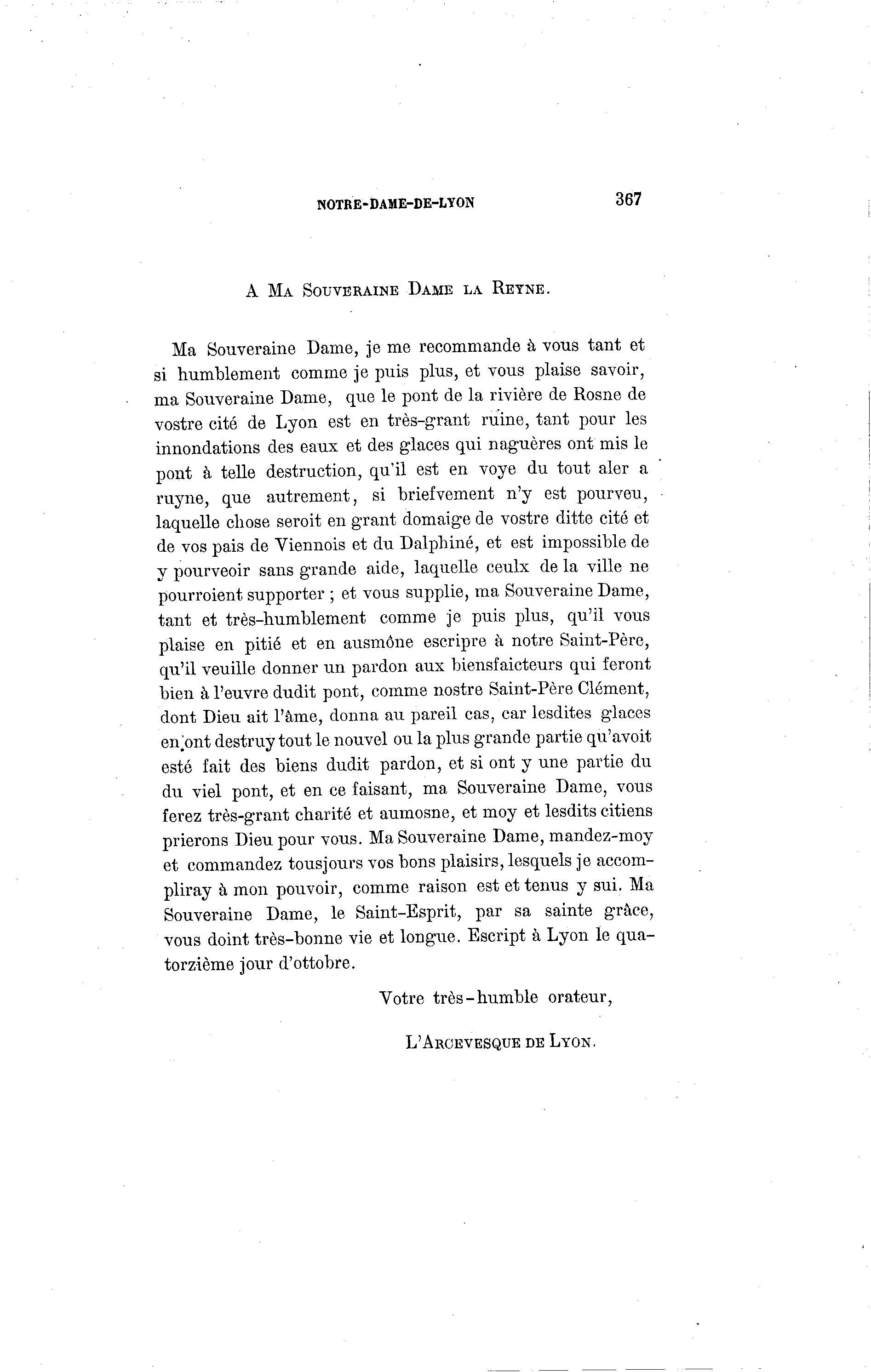 vostre cité de Lyon est en très-grant ruine, tant pour les