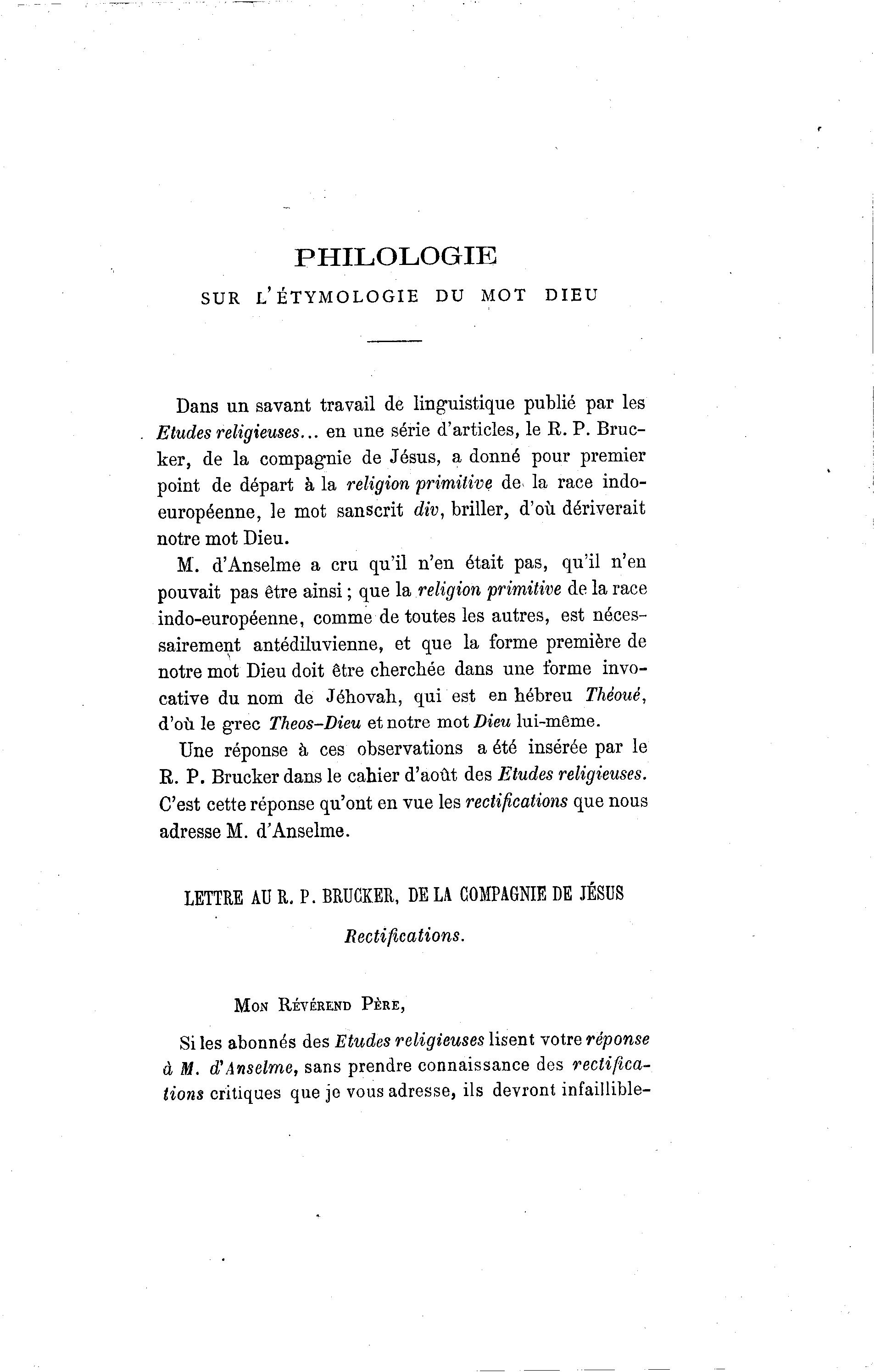LETTRE A R. P. BRUCKER, DE L C M A NE DE JÉSUS