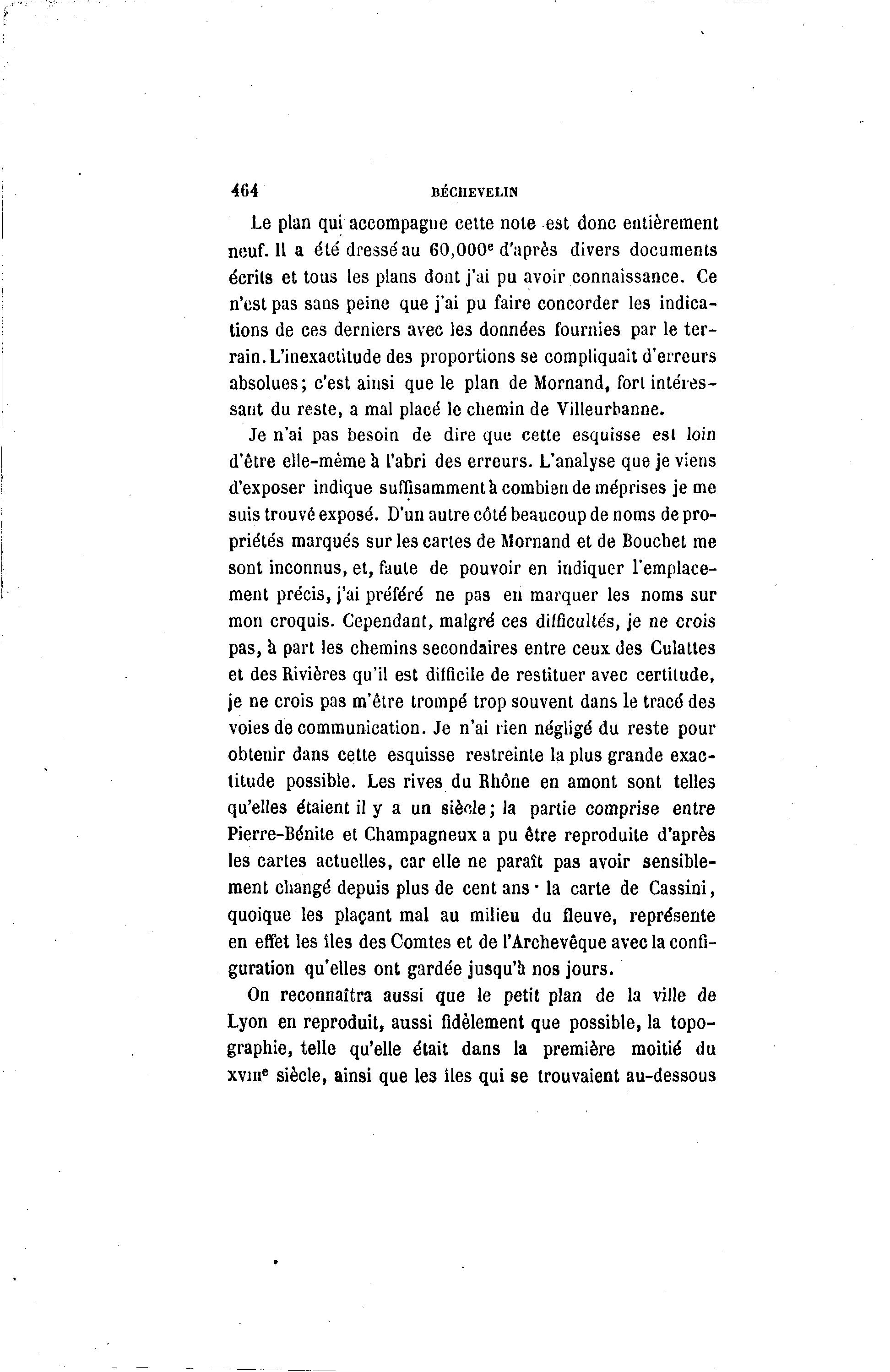 464 BÉCHEVELIN Le plan qui accompagne cette note est donc entièrement neuf. U a été dresse'au 60,000e d'après divers documents écrits et tous les plans dont j'ai pu avoir connaissance. Ce n'est pas sans peine que j'ai pu faire concorder les indica- tions de ces derniers avec les données fournies par le ter- rain. L'inexactitude des proportions se compliquait d'erreurs absolues; c'est ainsi que le plan de Mornand, fort intéres- sant du reste, a mal placé le chemin de Villeurbanne. Je n'ai pas besoin de dire que cette esquisse est loin d'être elle-même a l'abri des erreurs. L'analyse que je viens d'exposer indique suffisamment a combien de méprises je me suis trouvé exposé. D'un autre côté beaucoup de noms de pro- priétés marqués sur les cartes de Mornand et de Bouchet me sont inconnus, et, faute de pouvoir en indiquer l'emplace- ment précis, j'ai préféré ne pas en marquer les noms sur mon croquis. Cependant, malgré ces difficultés, je ne crois pas, à part les chemins secondaires entre ceux des Culattes et des Rivières qu'il est difficile de restituer avec certitude, je ne crois pas m'être trompé trop souvent dans le tracé des voies de communication. Je n'ai rien négligé du reste pour obtenir dans cette esquisse restreinte la plus grande exac- titude possible. Les rives du Rhône en amont sont telles qu'elles étaient il y a un siècle; la partie comprise entre Pierre-Bénite et Champagneux a pu être reproduite d'après les cartes actuelles, car elle ne paraît pas avoir sensible- ment changé depuis plus de cent ans- la carte de Cassini, quoique les plaçant mal au milieu du fleuve, représente en effet les îles des Comtes et de l'Archevêque avec la confi- guration qu'elles ont gardée jusqu'à nos jours. On reconnaîtra aussi que le petit plan de la ville de Lyon en reproduit, aussi fidèlement que possible, la topo- graphie, telle qu'elle était dans la première moitié du xvme siècle, ainsi que les îles qui se trouvaient au-dessous