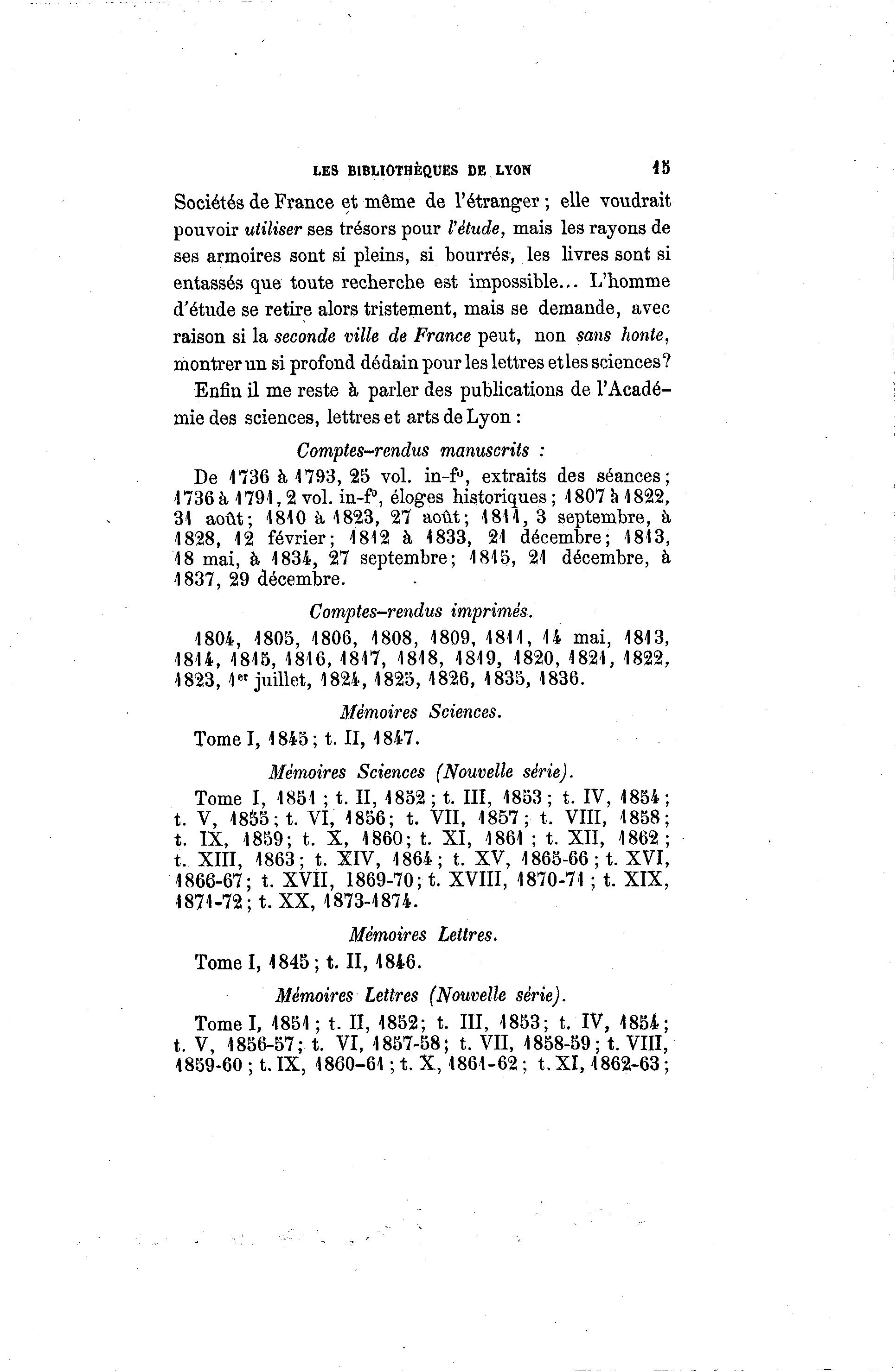 LES BIBLIOTHÈQUES DE LYON 15