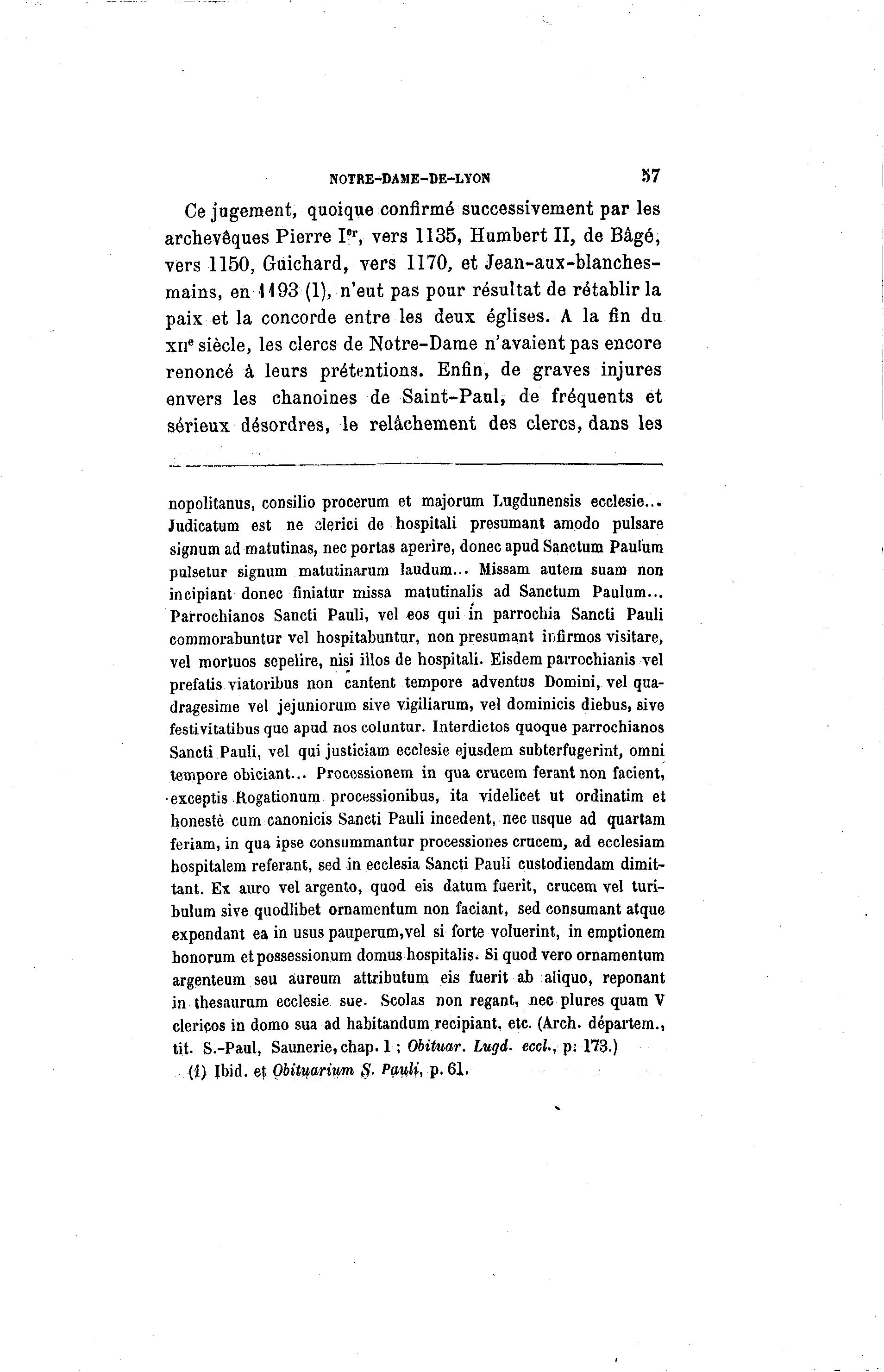 tit. S.-Paul, Saunerie,chap. 1 ; Obituar. Lugd. eccl., p: 173.)