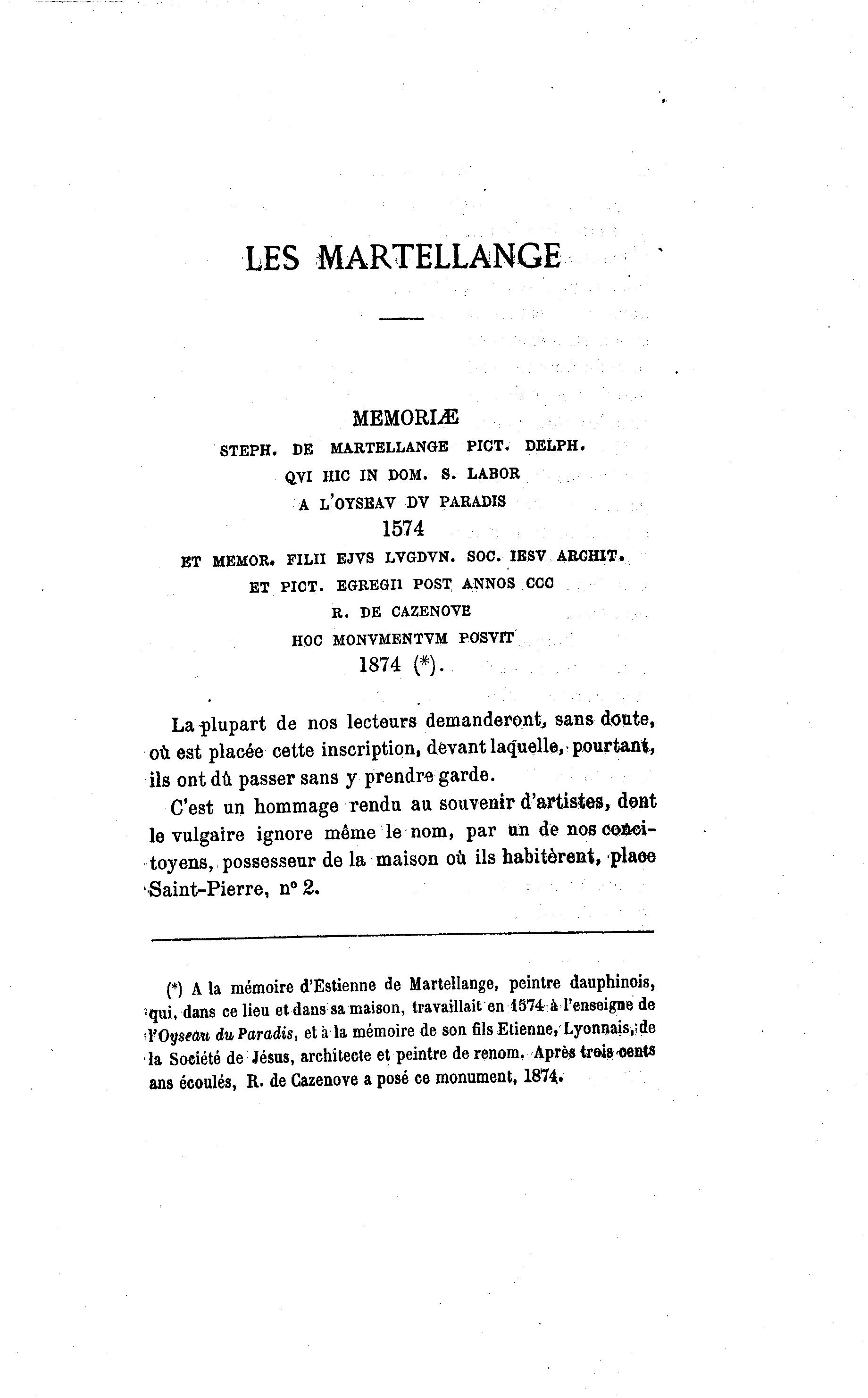 (*) A la mémoire d'Estienne de Martellange, peintre dauphinois,