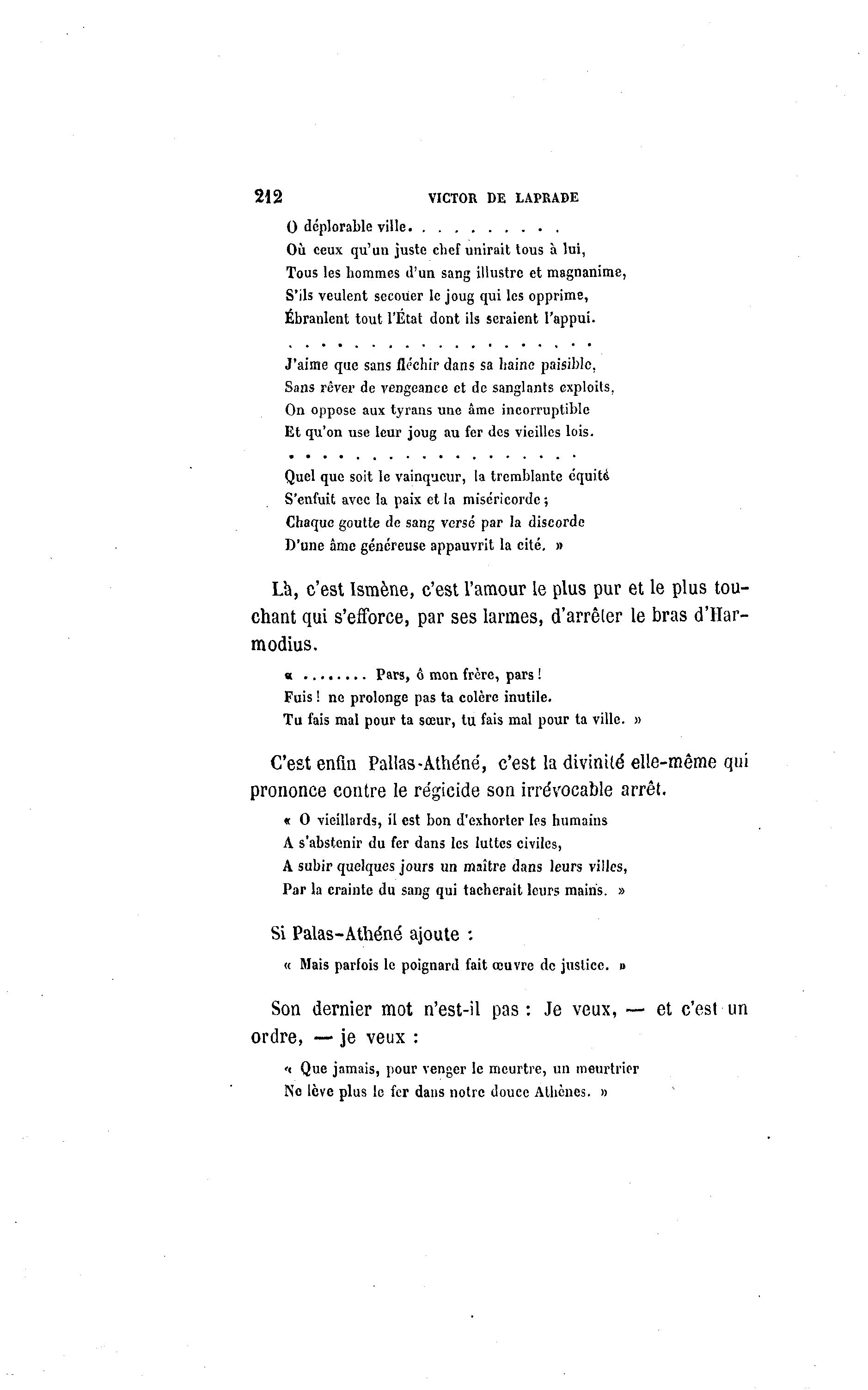 '< Que jamais, pour venger le meurtre, un meurtrier