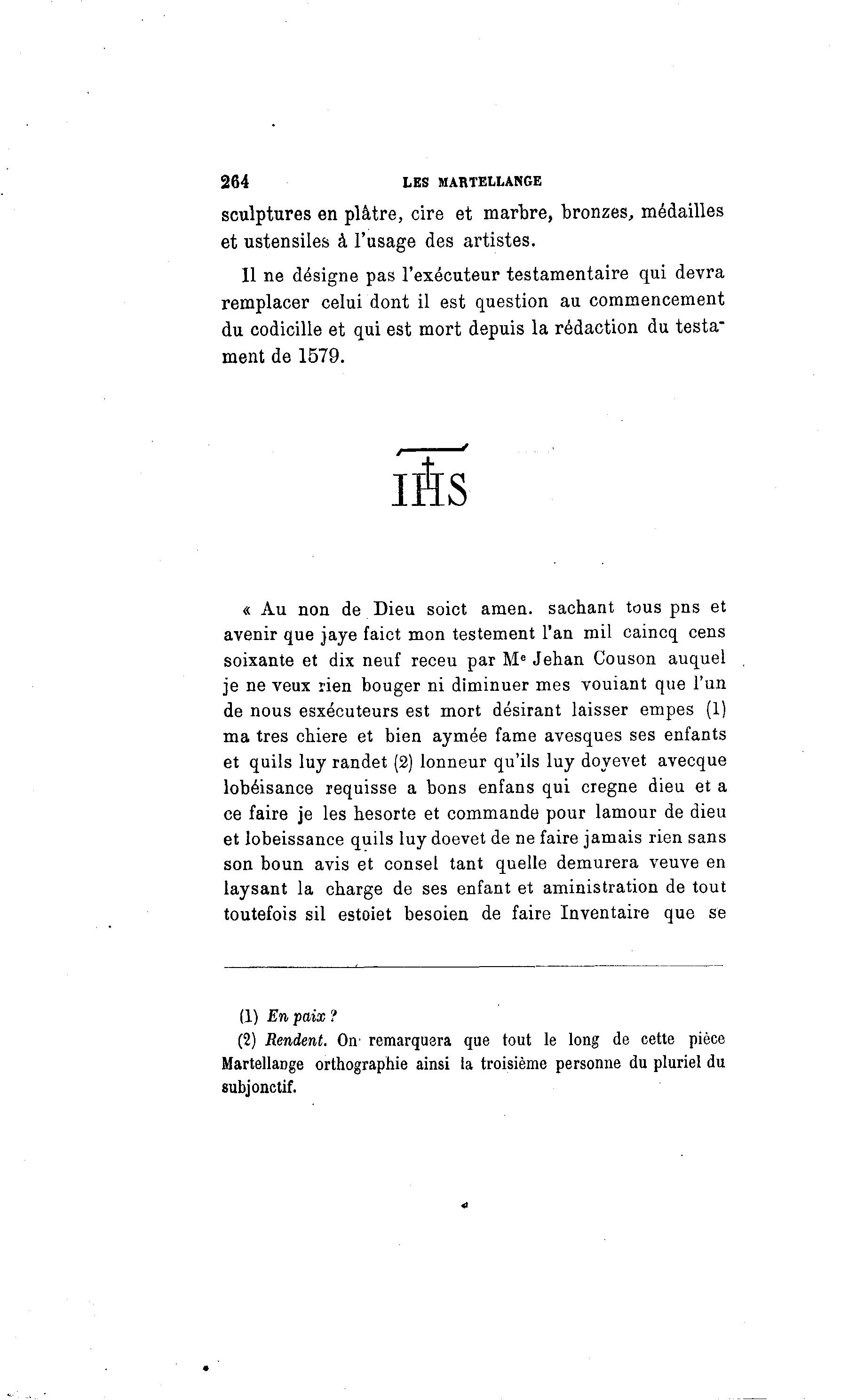 « Au non de Dieu soict amen, sachant tous pns et