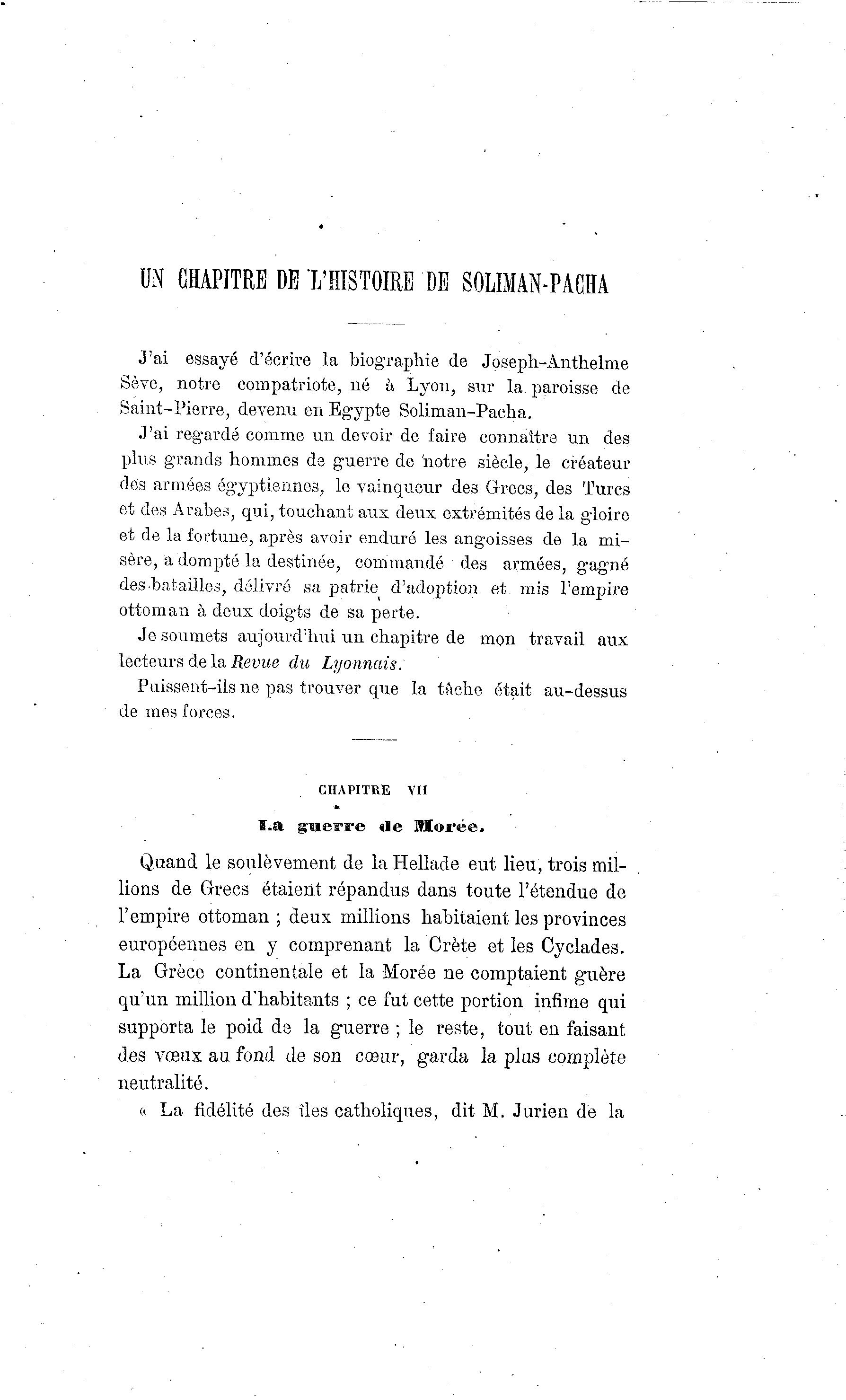 UN CHAPITRE DE L'HISTOIRE DE SOLIMAN-PACHA