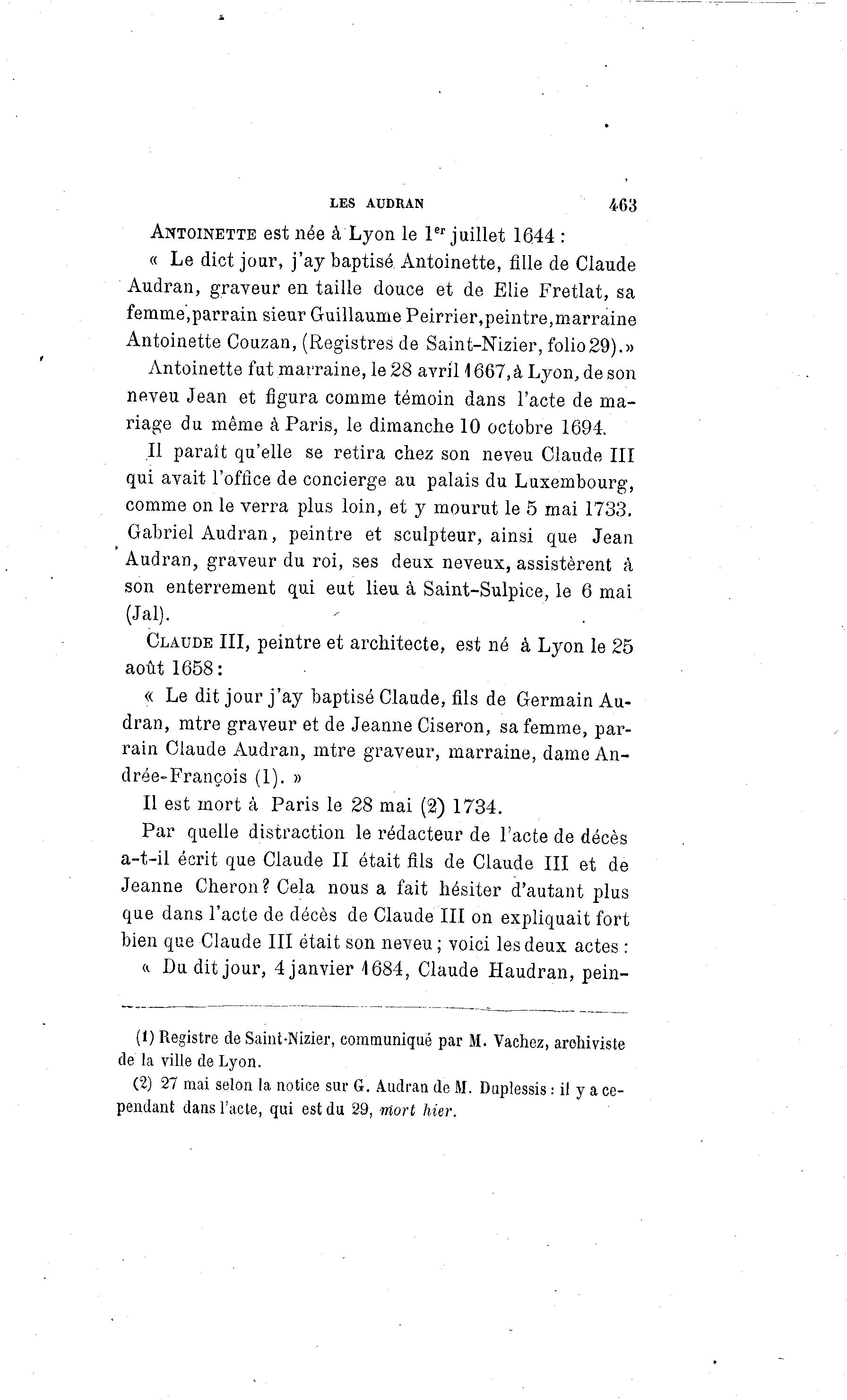 (1) Registre de Saint-Nizier, communiqué par M. Vachez, archiviste