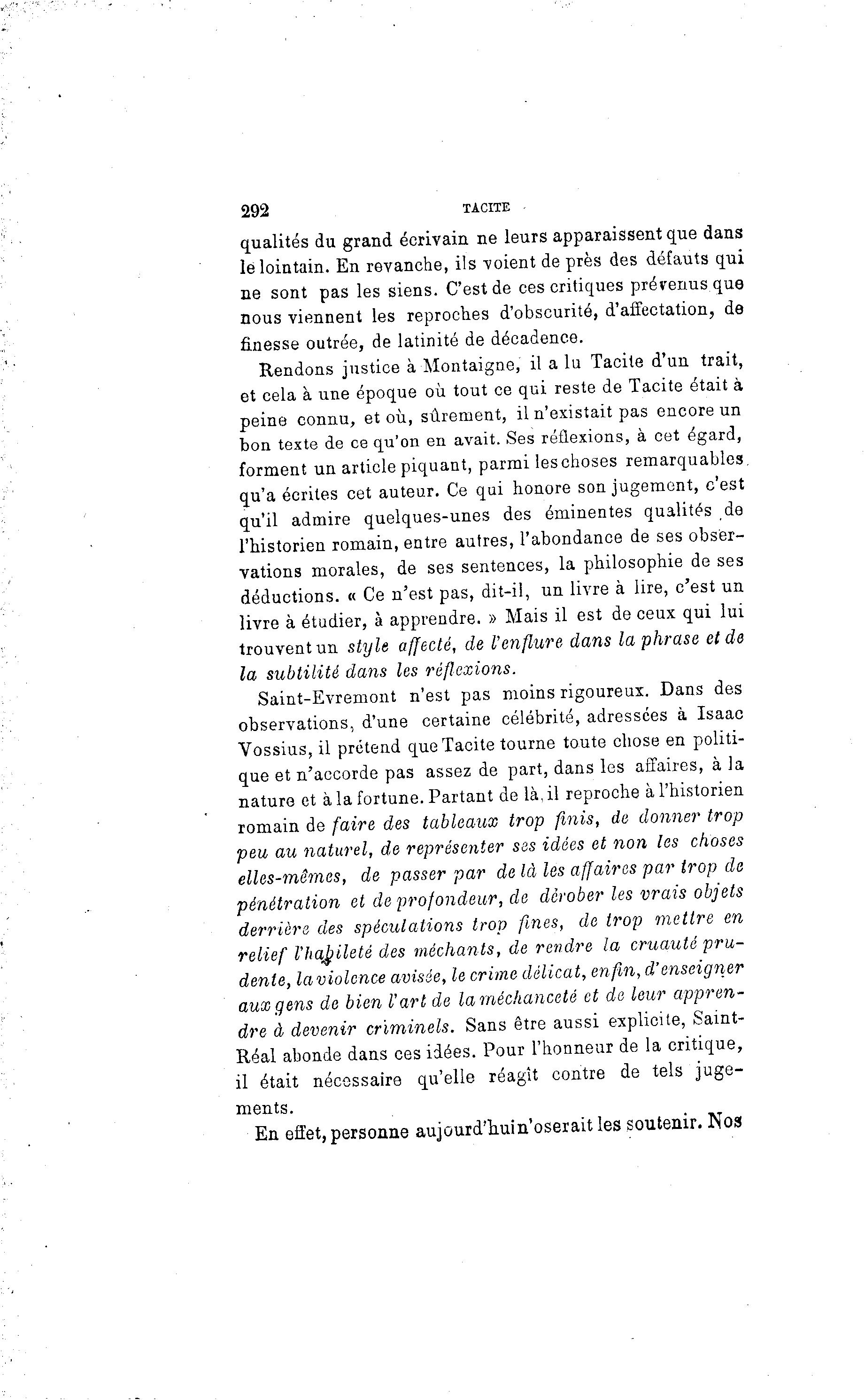 Rendons justice à Montaigne, il a lu Tacite d'un trait,