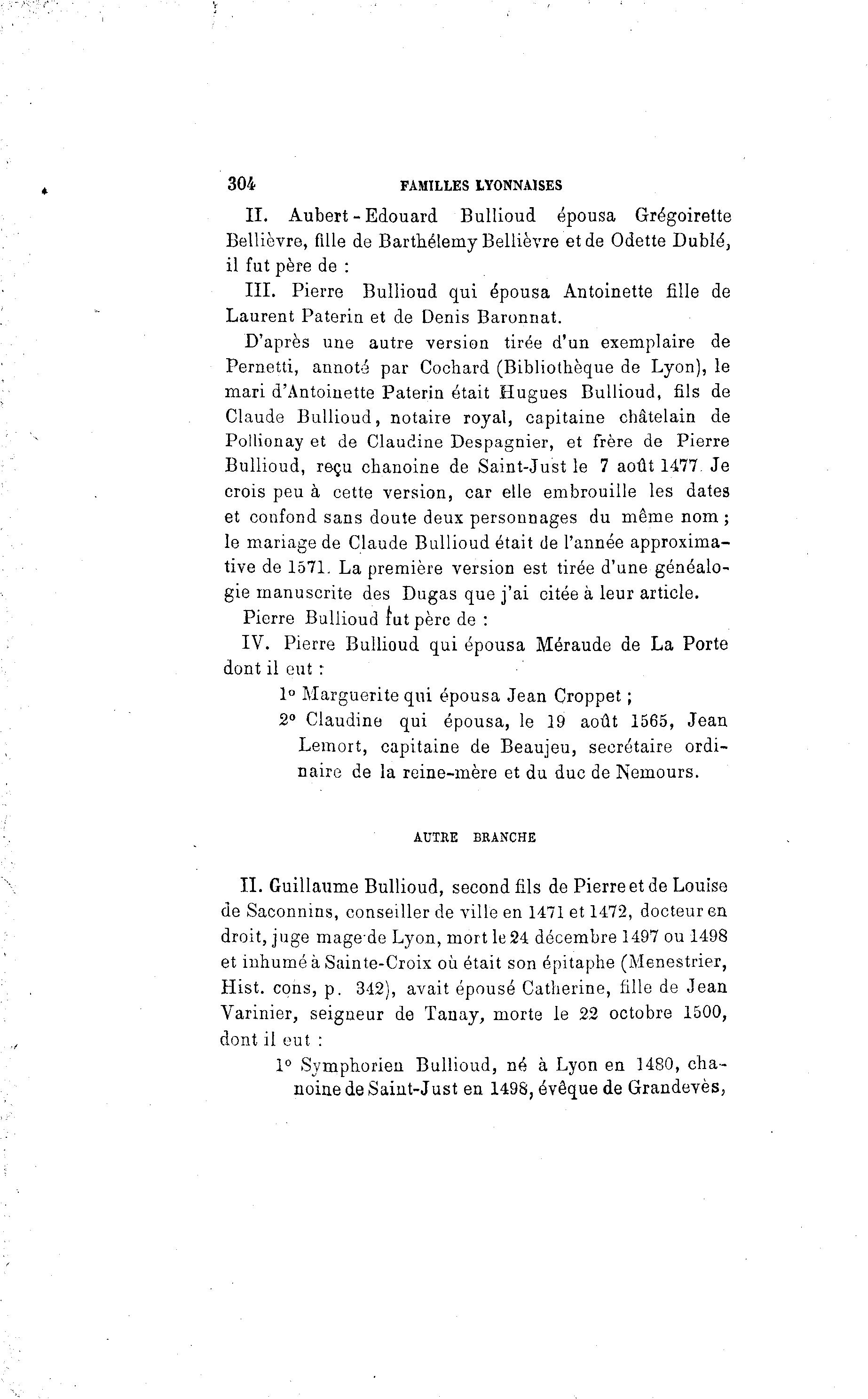 II. Aubert - Edouard Bullioud épousa Grégoirette