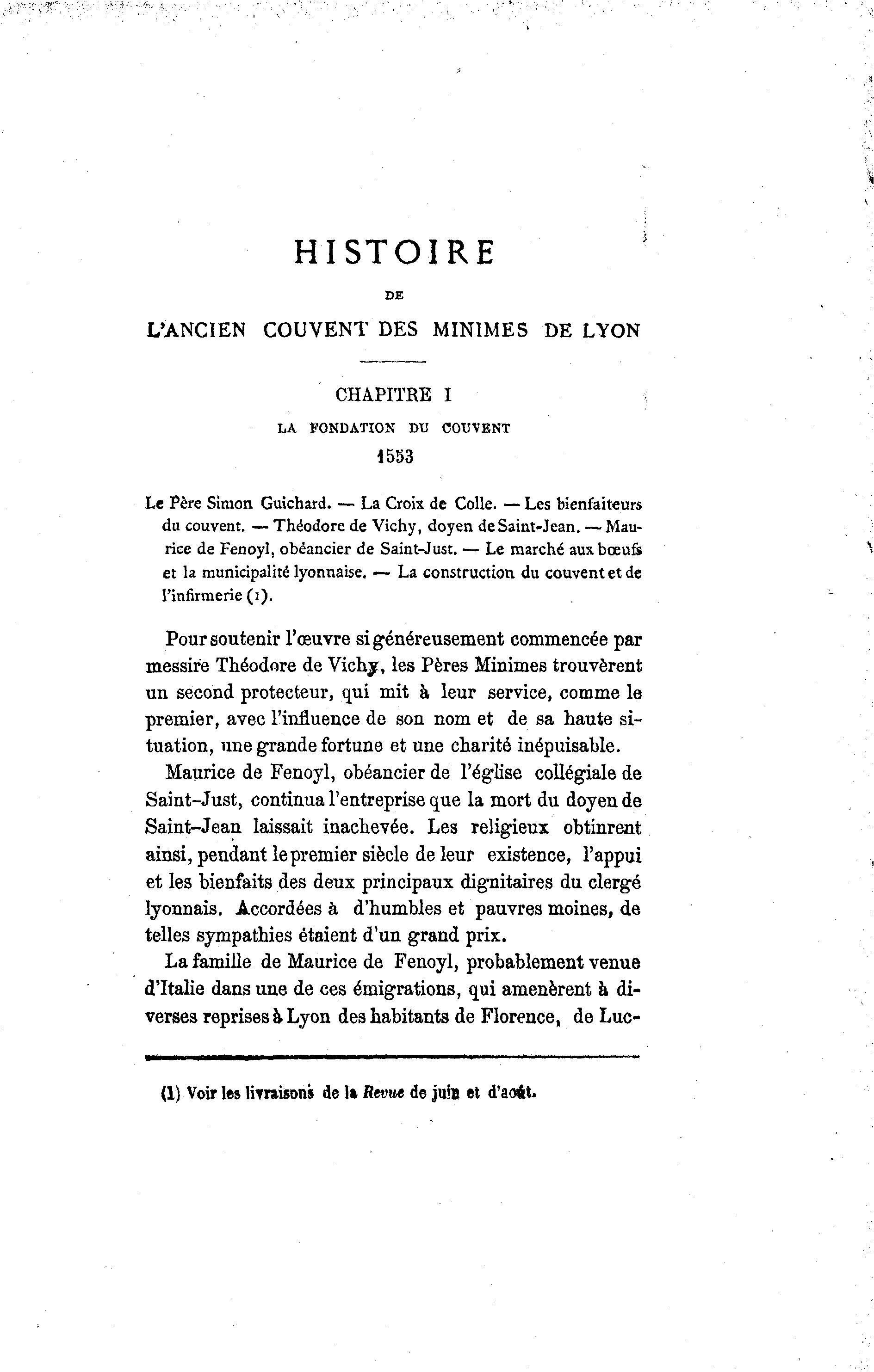 du couvent. — Théodore de Vichy, doyen de Saint-Jean. —Mau-