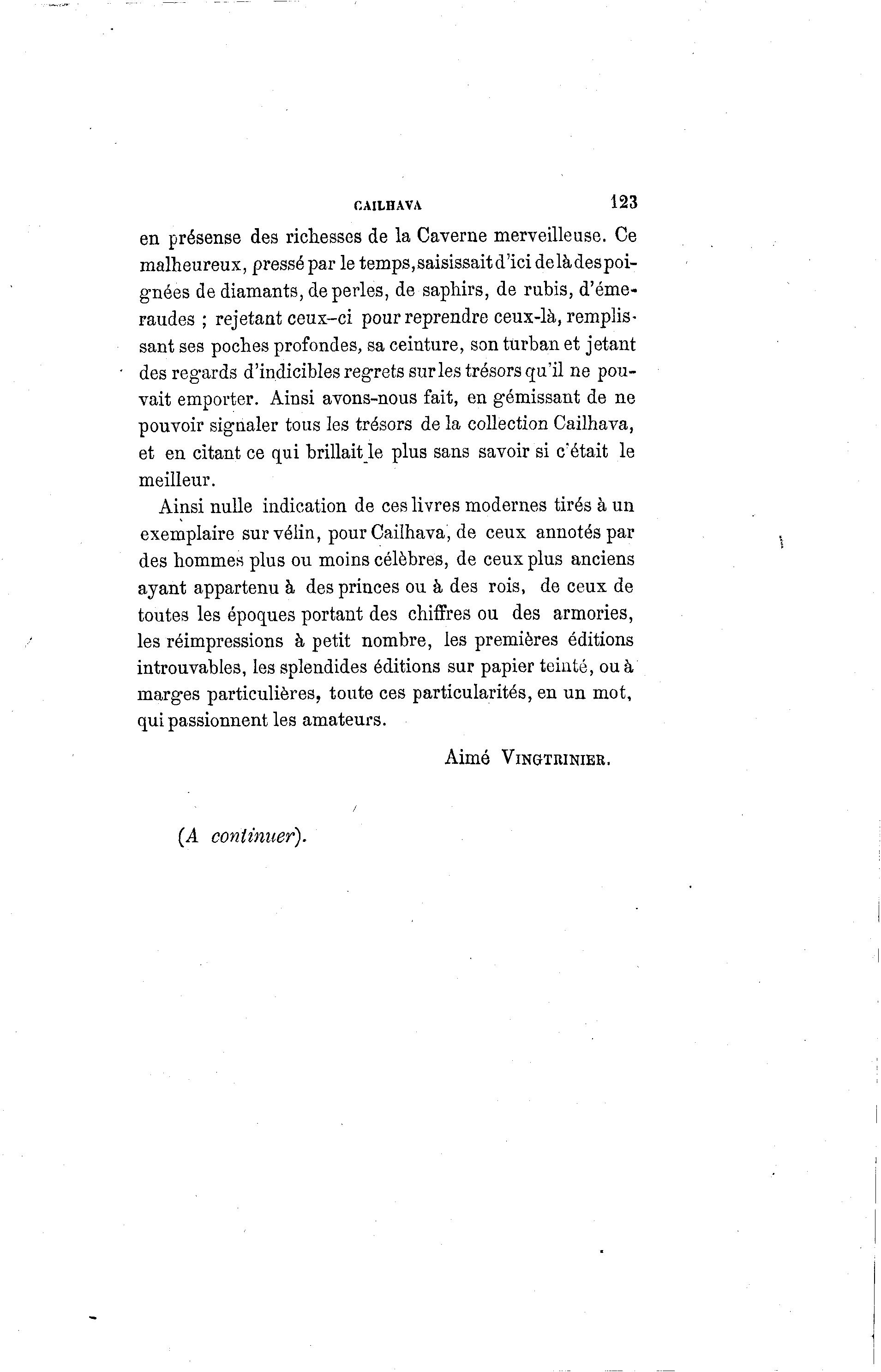 pouvoir signaler tous les trésors de la collection Cailhava,