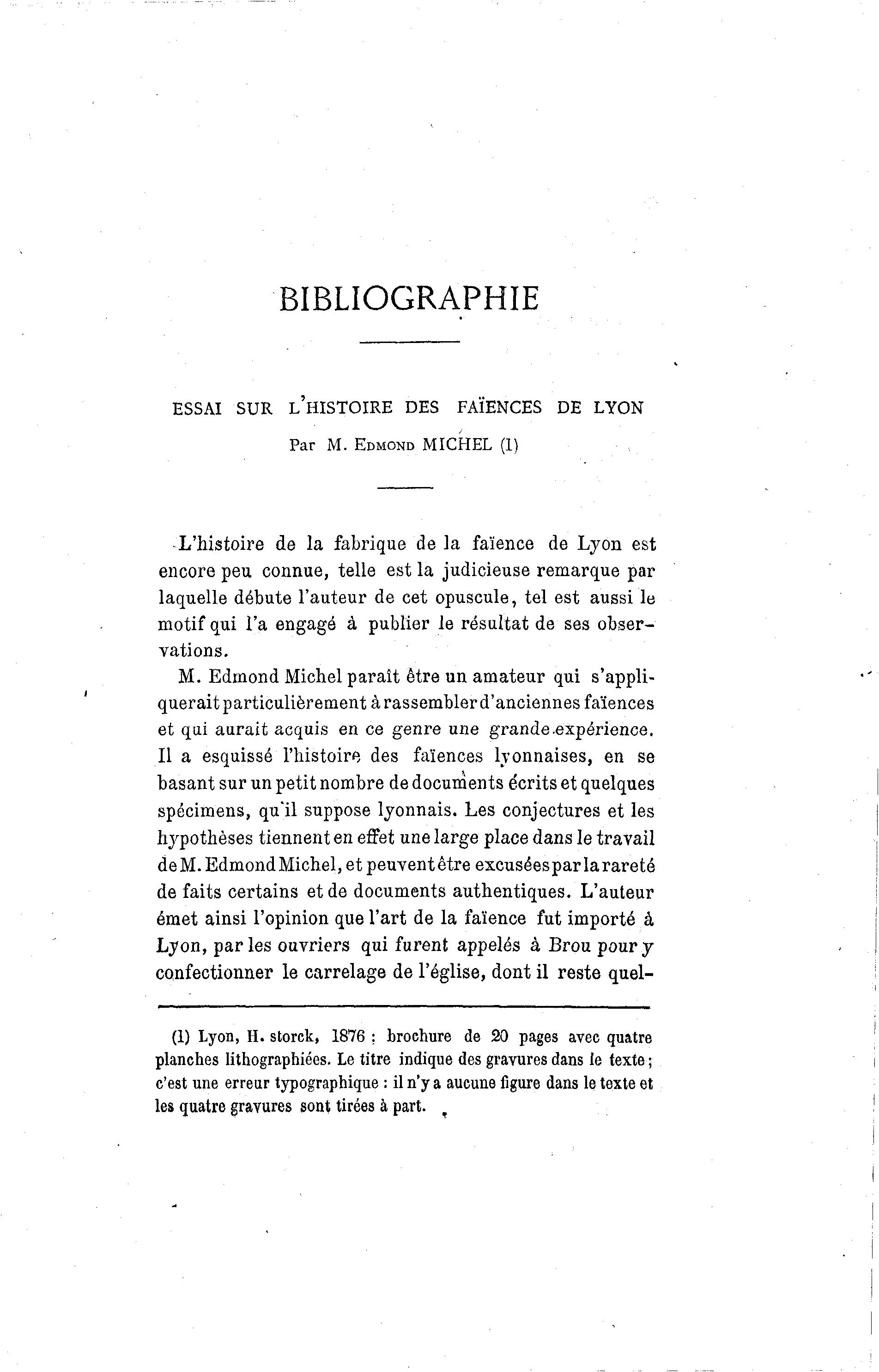 (1) Lyon, H. storck, 1876 ; brochure de 20 pages avec quatre