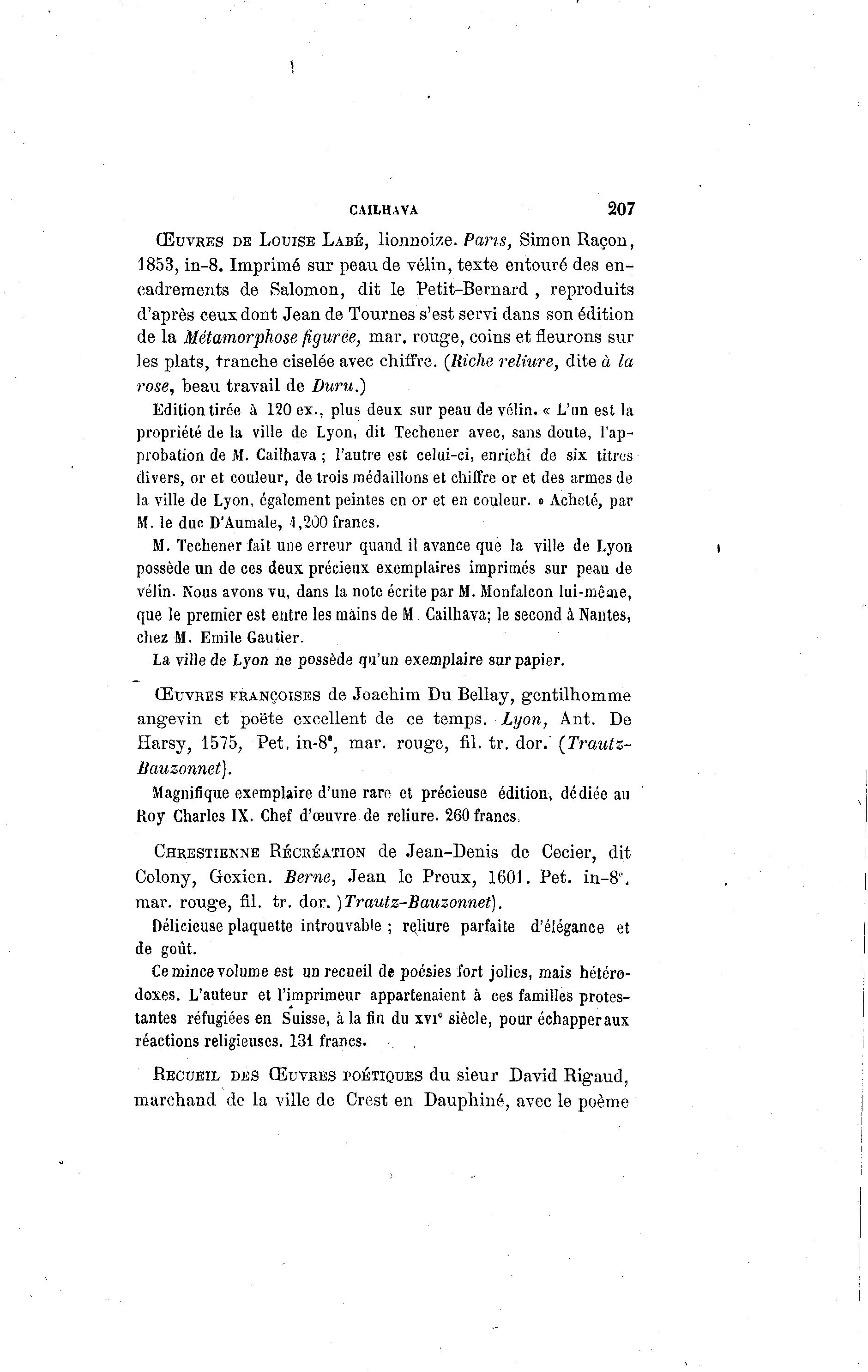propriété de la ville de Lyon, dit Techener avec, sans doute, l'ap-