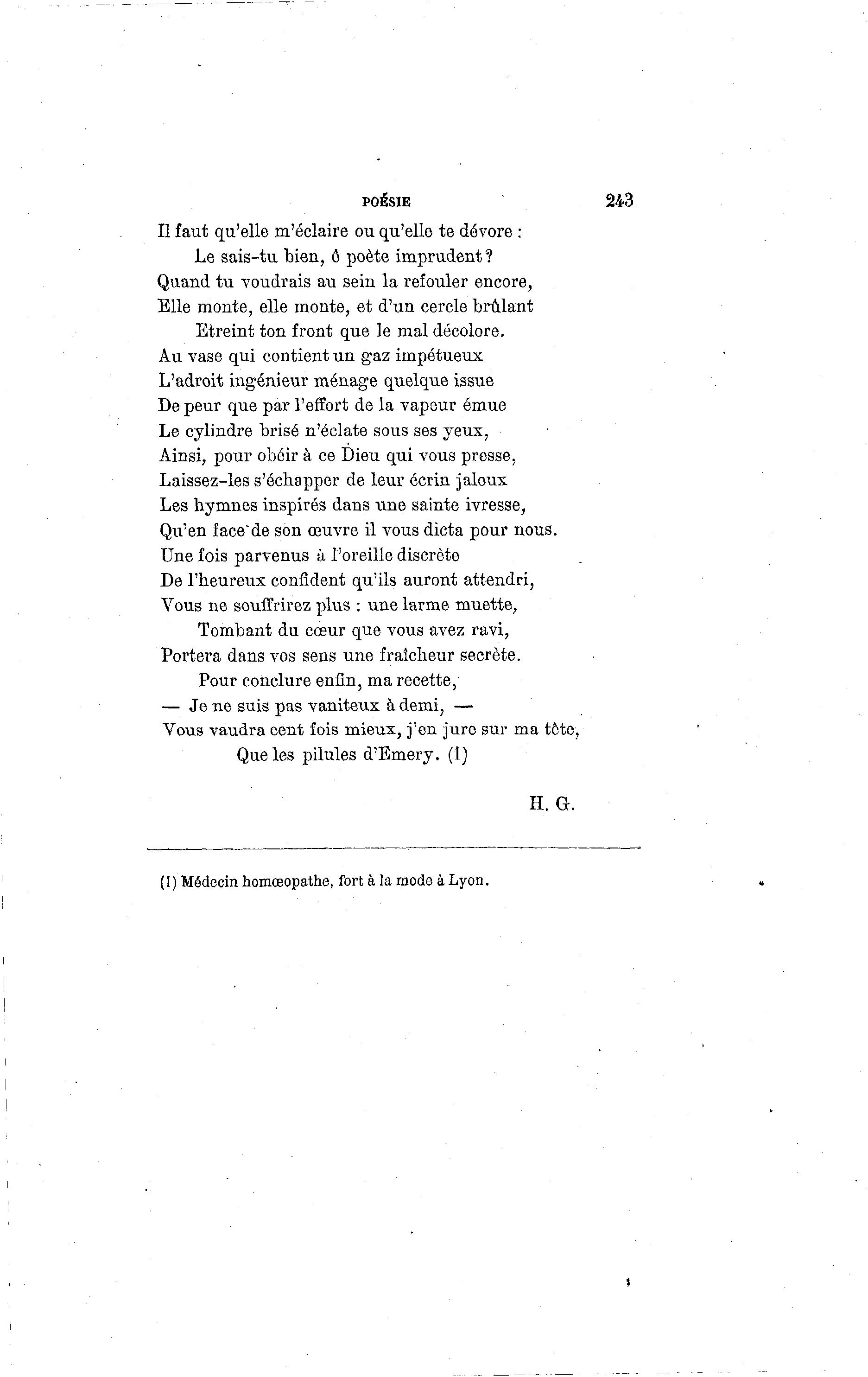 (1) Médecin homœopathe, fort à la mode à Lyon.