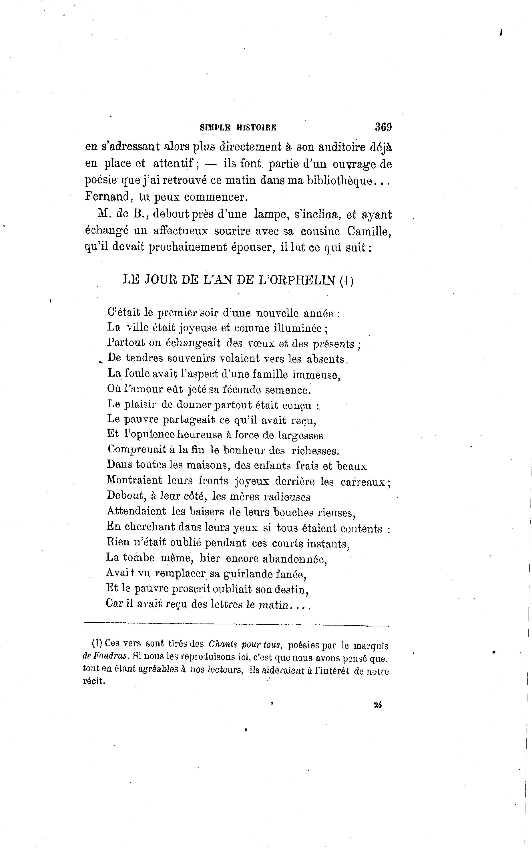 (I) Ces vers sont tirés des Chants pour tous, poésies par le marquis