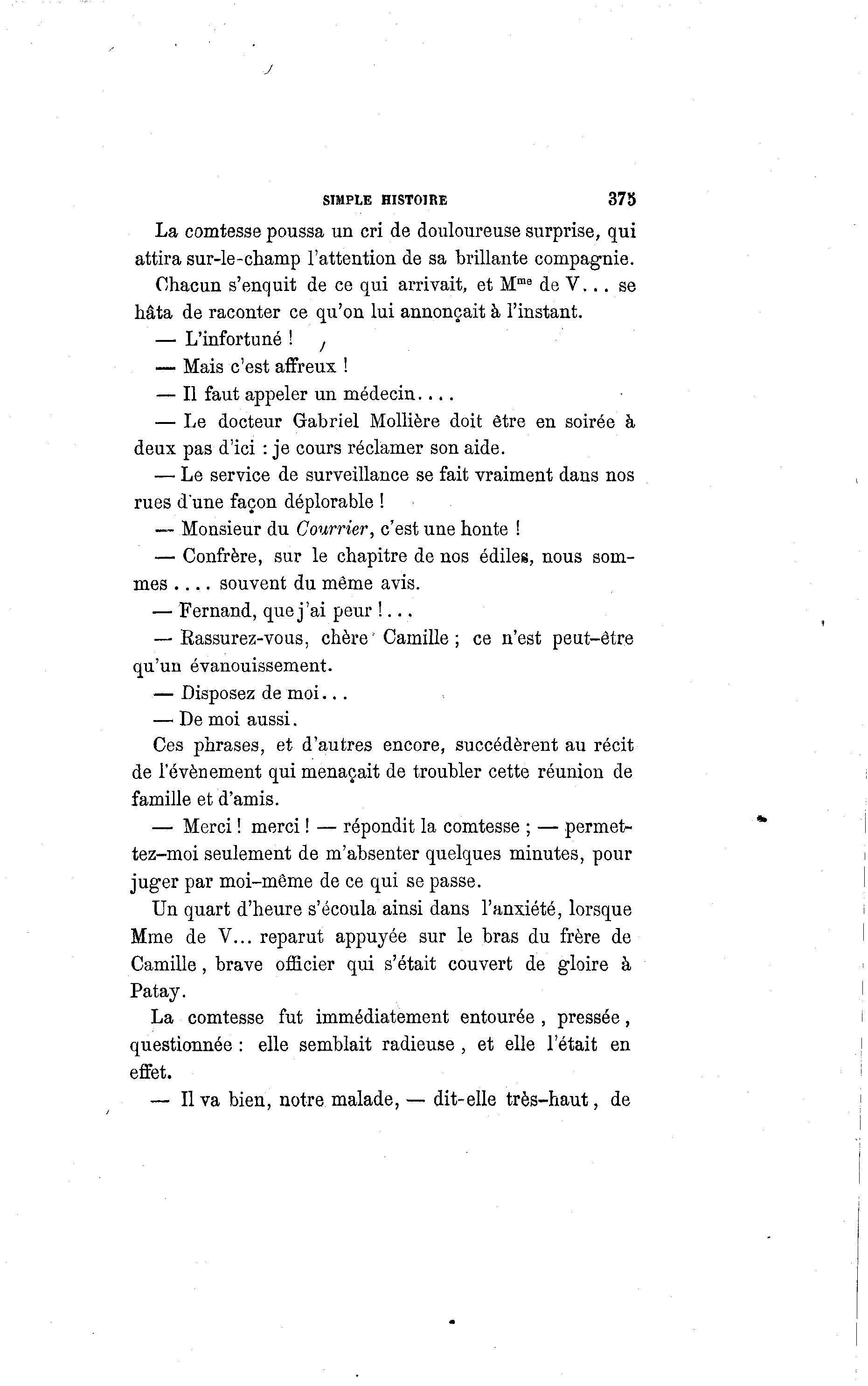 Chacun s'enquit de ce qui arrivait, et Mme de V. . . se