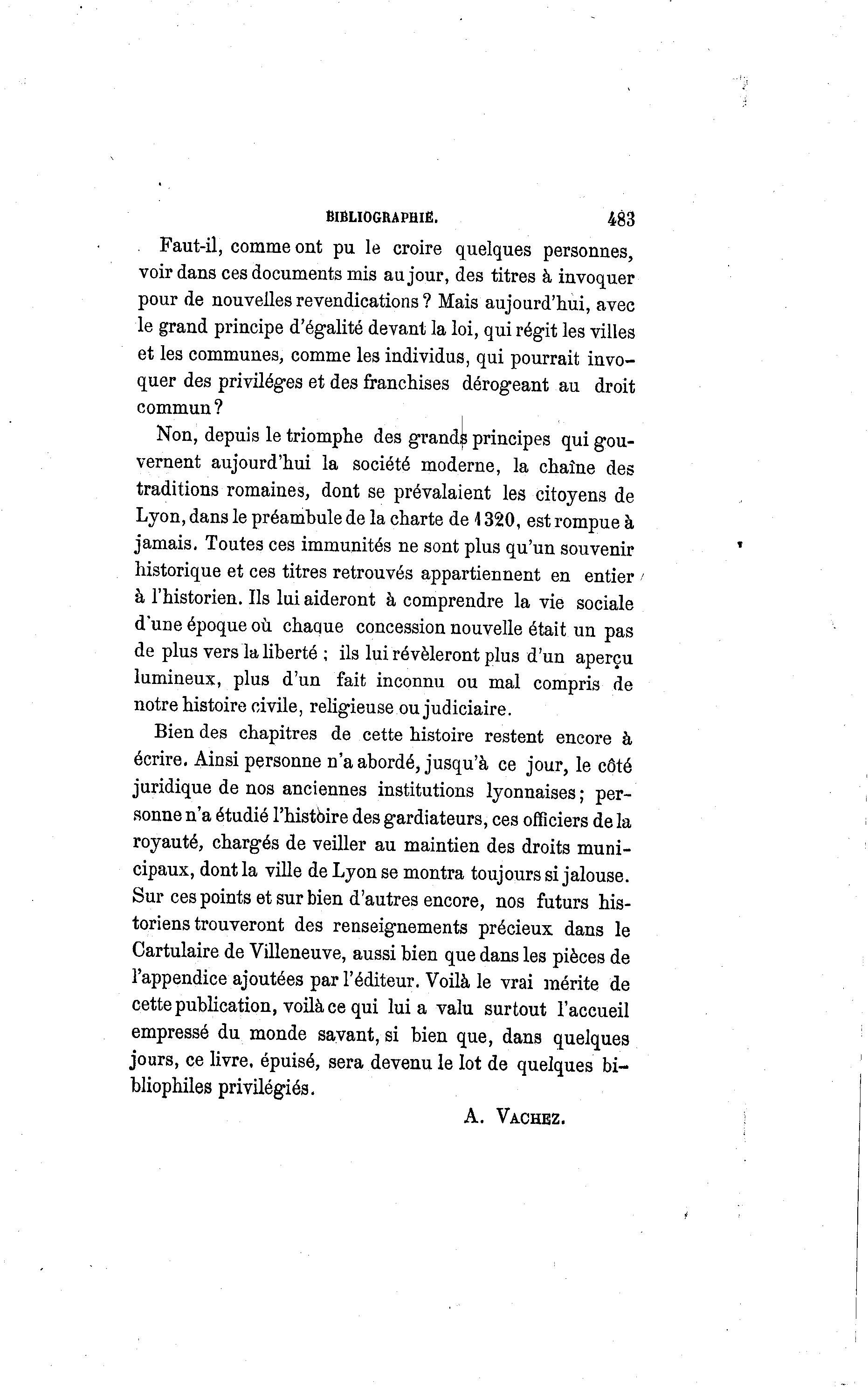 Lyon, dans le préambule de la charte de \ 320, est rompue Ã