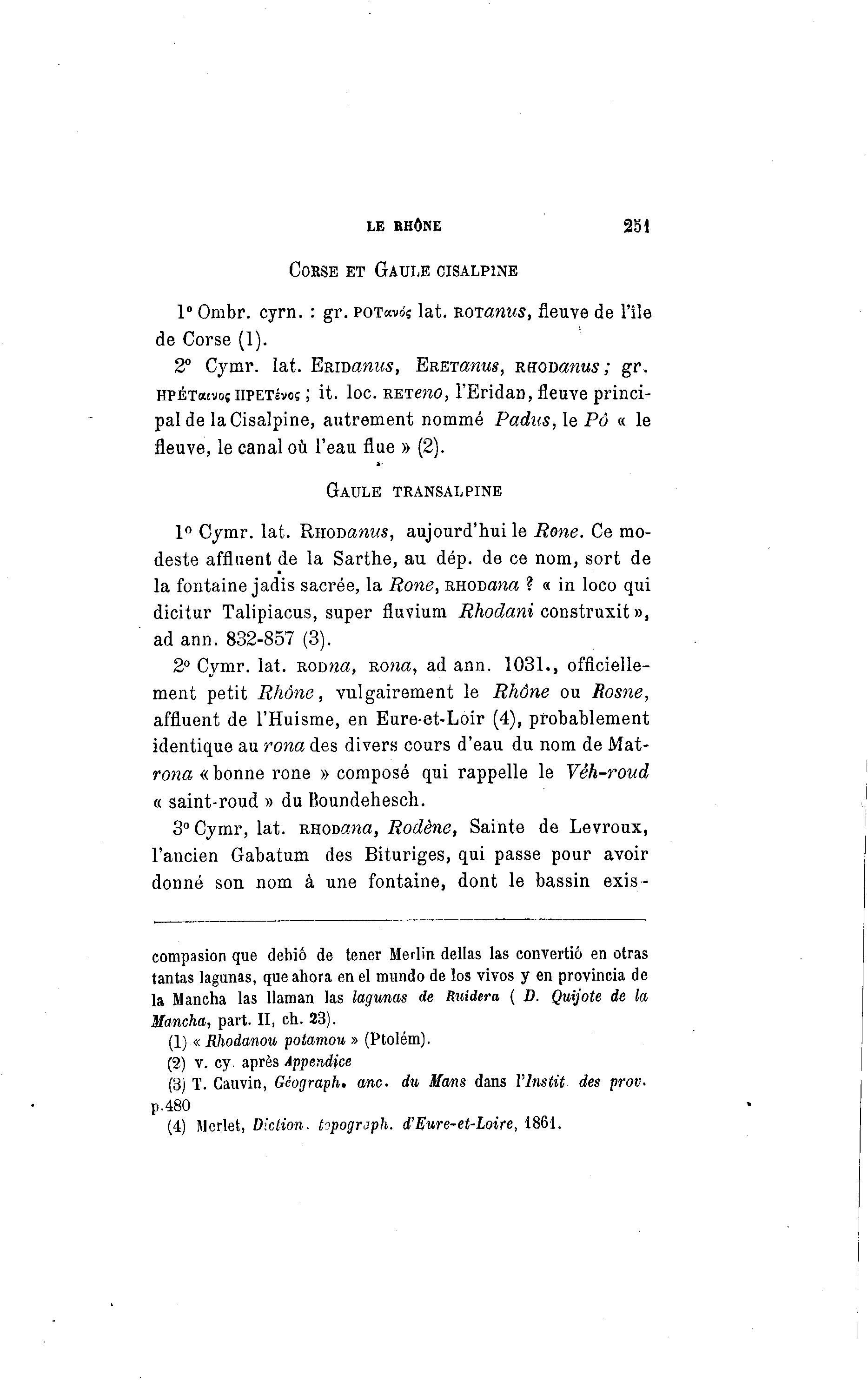 (3) T. Cauvin, Géograph. anc. du Mans dans Ylnstit des prov.