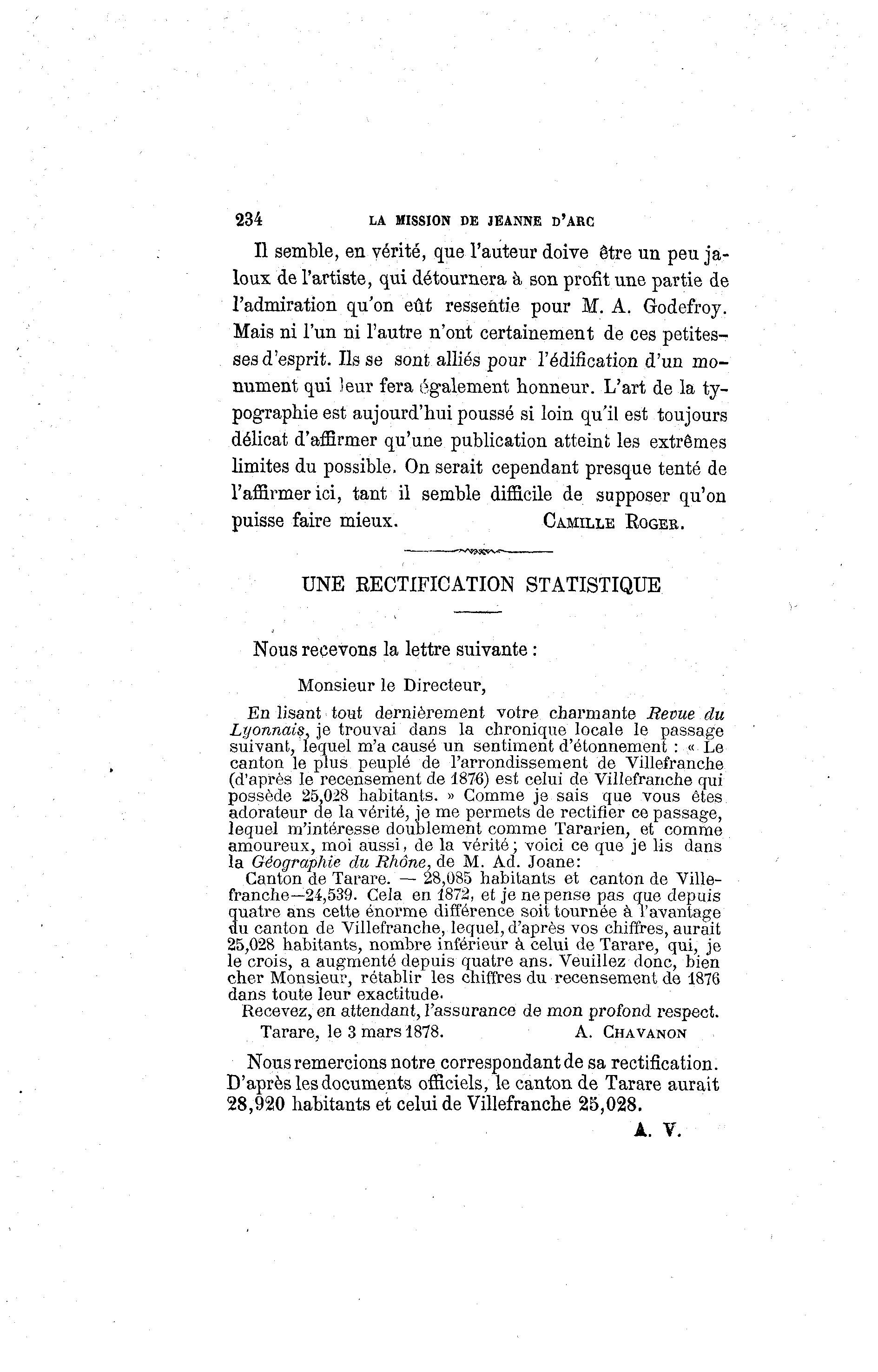 Tarare, le 3 mars 1878. A. CHAVANON
