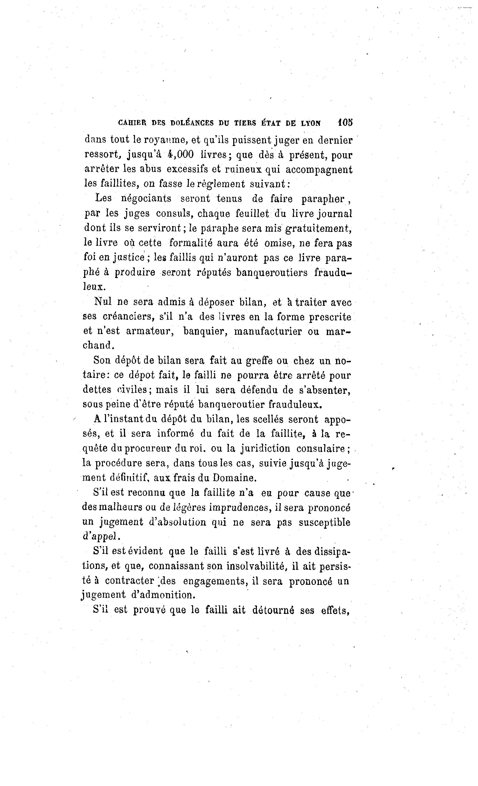 CAHIER DES DOLÉANCES DU TIERS ÉTAT DE LïON 105