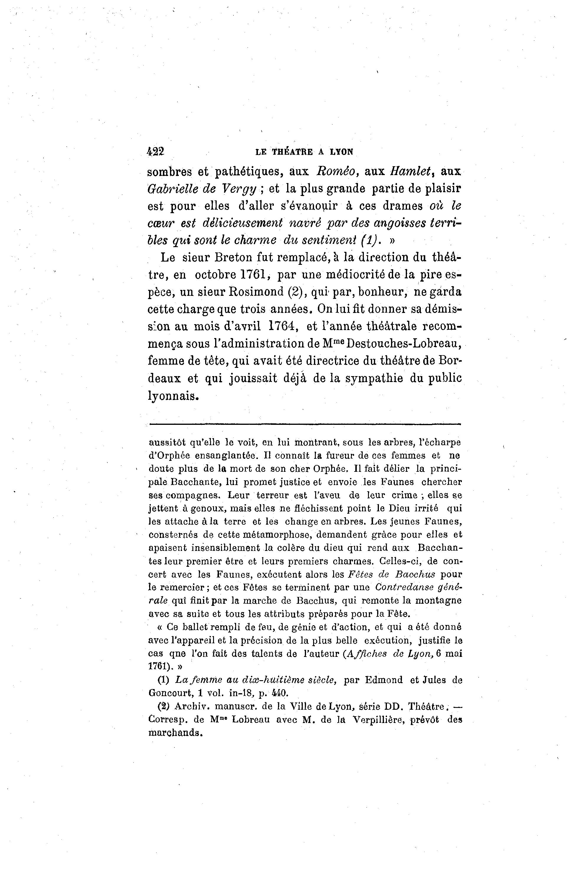 (2) Archiv. manuscr. de la Ville de Lyon, série DD. Théâtre. — •