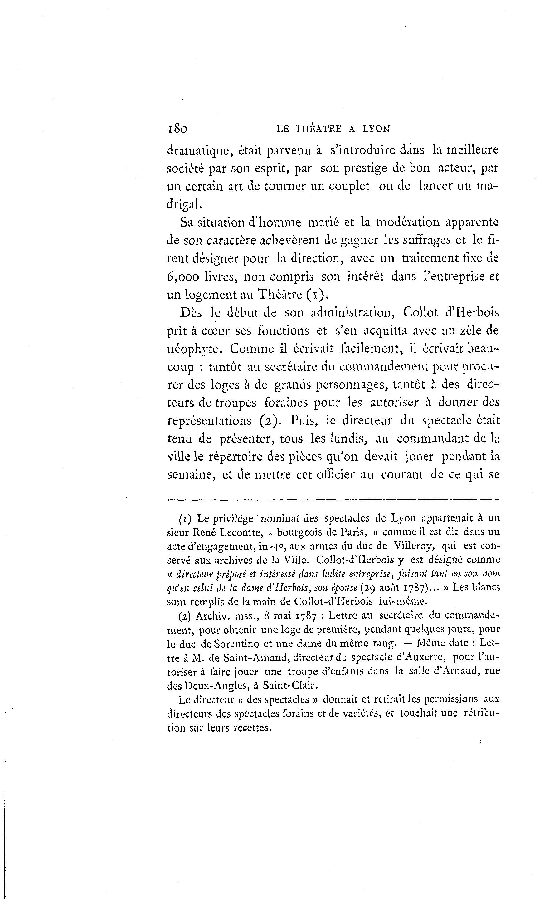(1) Le privilège nominal des spectacles de Lyon appartenait à un
