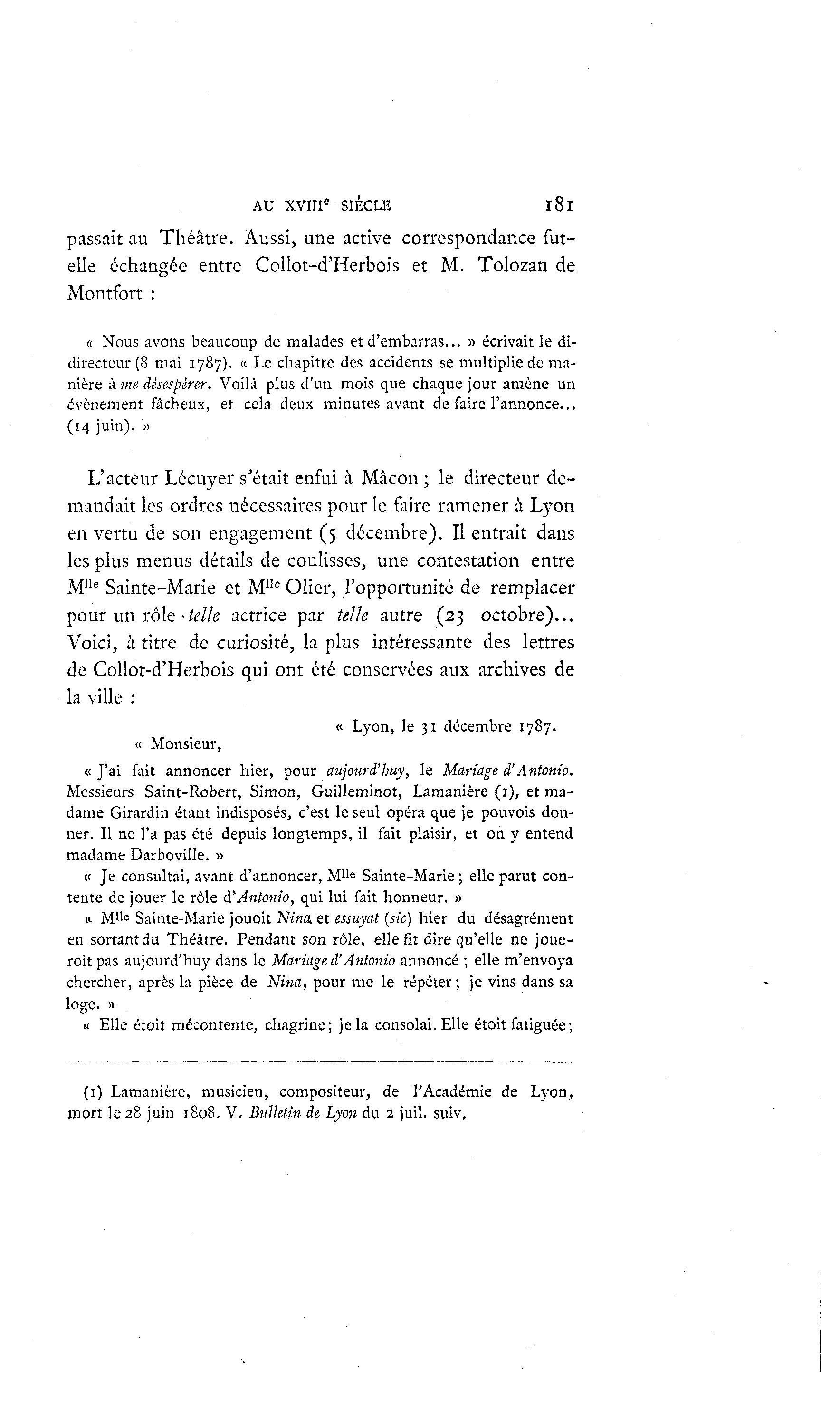 (1) Lamanière, musicien, compositeur, de l'Académie de Lyon,