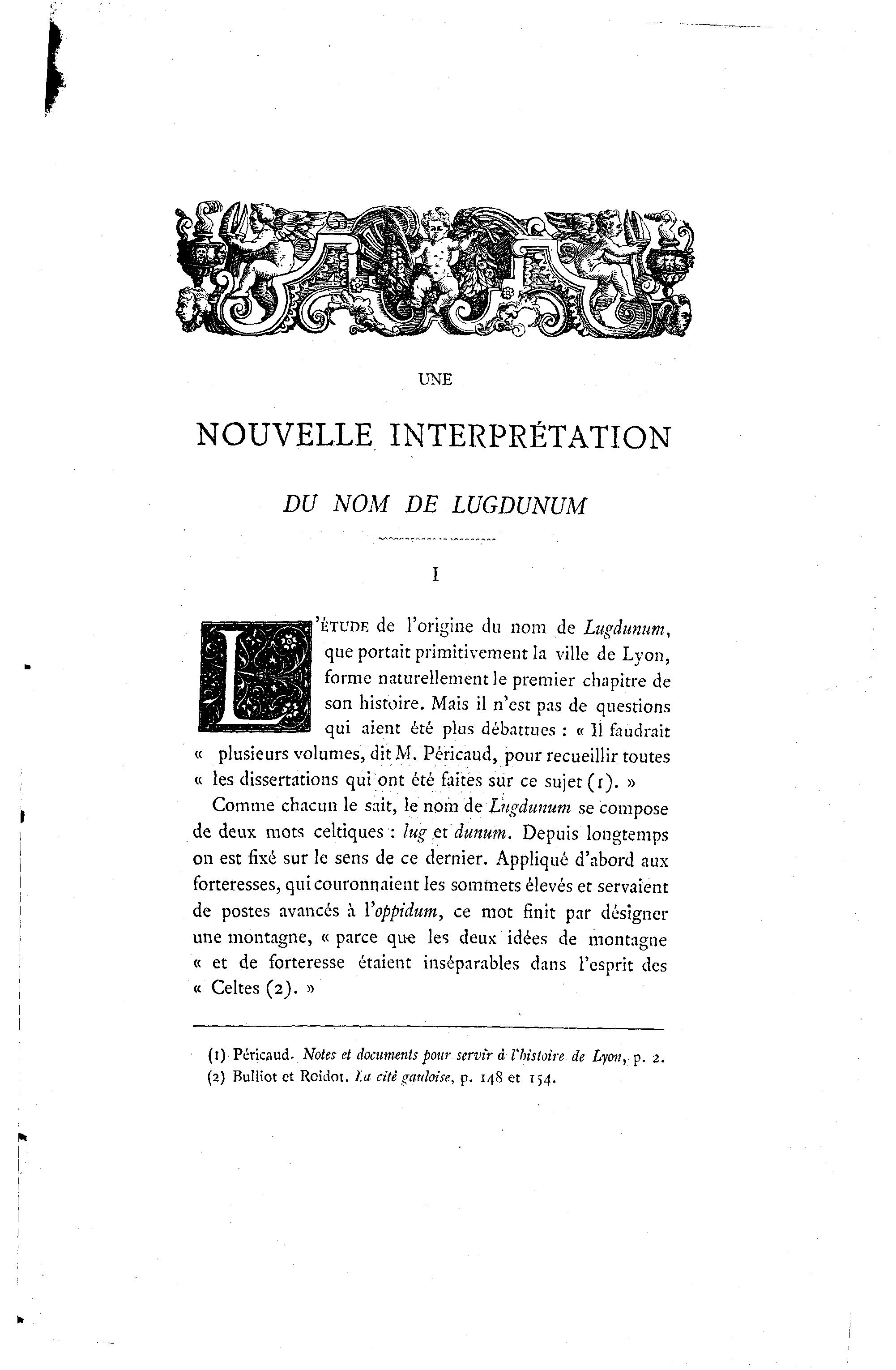 (1) Péricaud. Notes et documents pour servir à l'histoire de Lyon, p. 2.