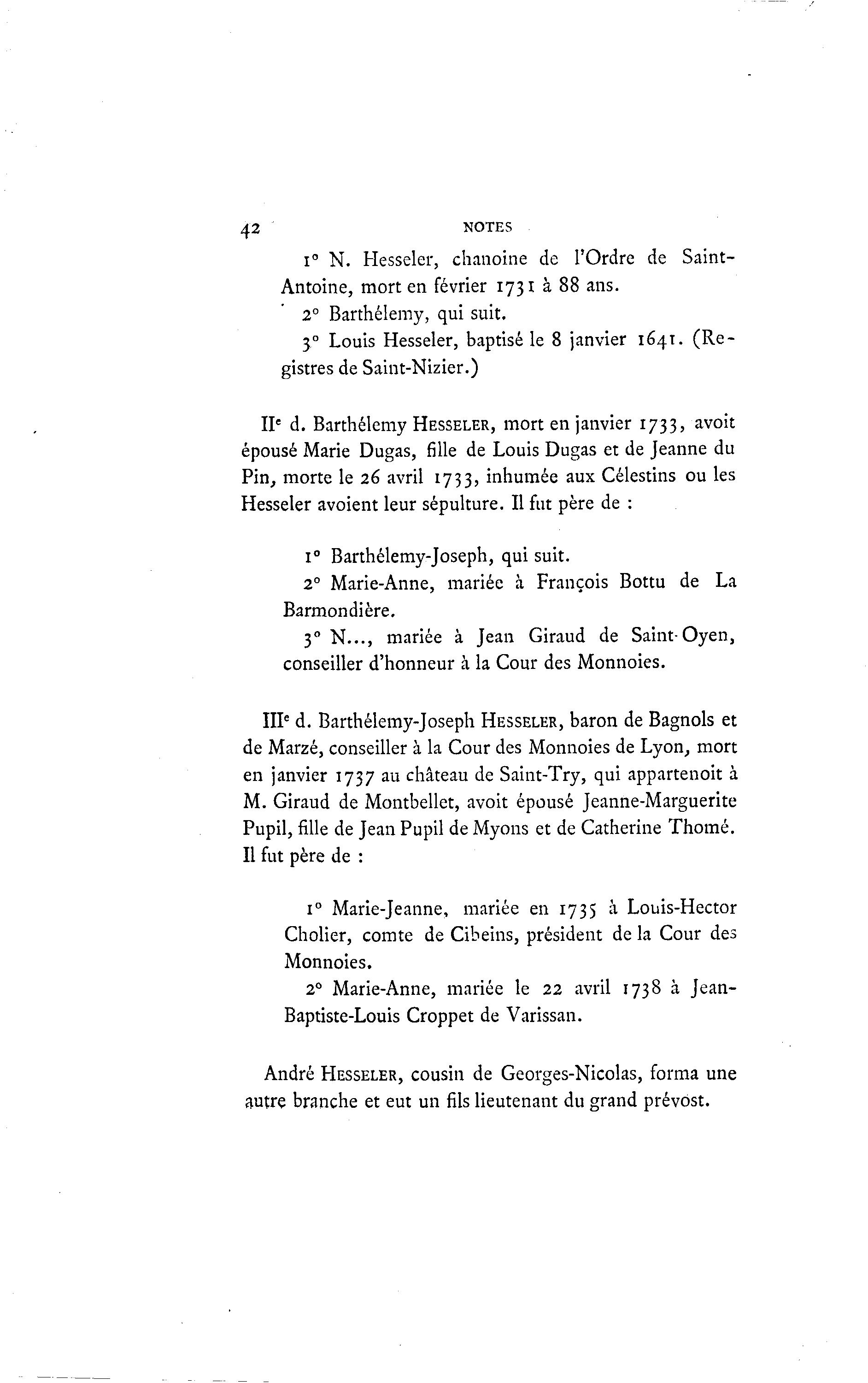 IIe d. Barthélémy HESSELER, mort en janvier 1733, avoit