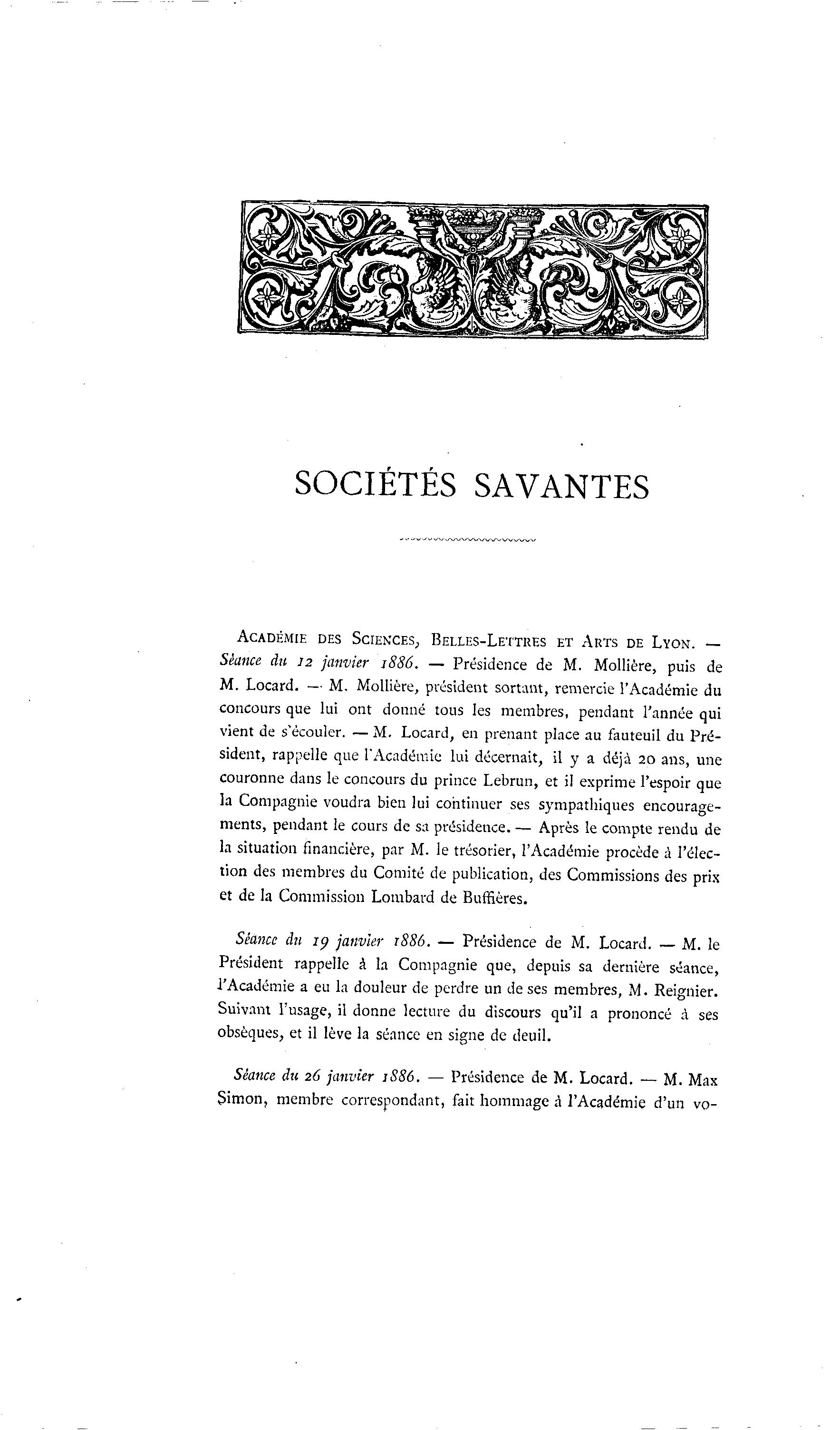 Séance du 12 janvier 1886. — Présidence de M. Mollière, puis de