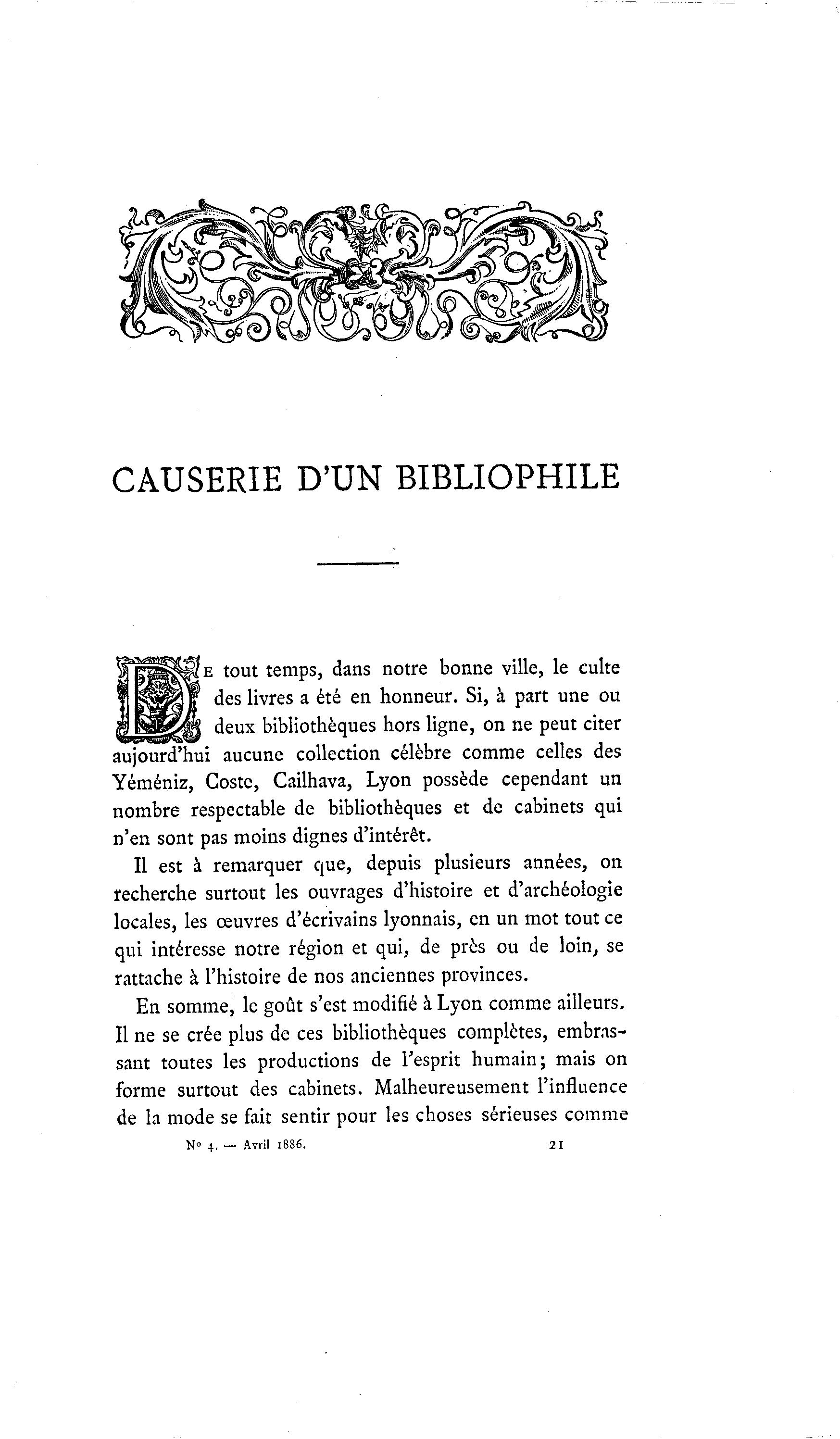 CAUSERIE D'UN BIBLIOPHILE