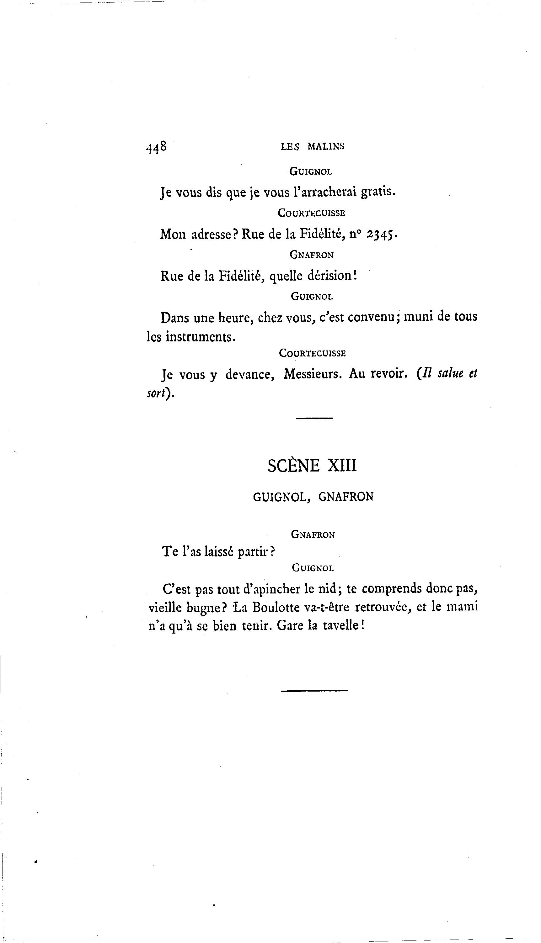 Je vous y devance, Messieurs. Au revoir. (// salue et